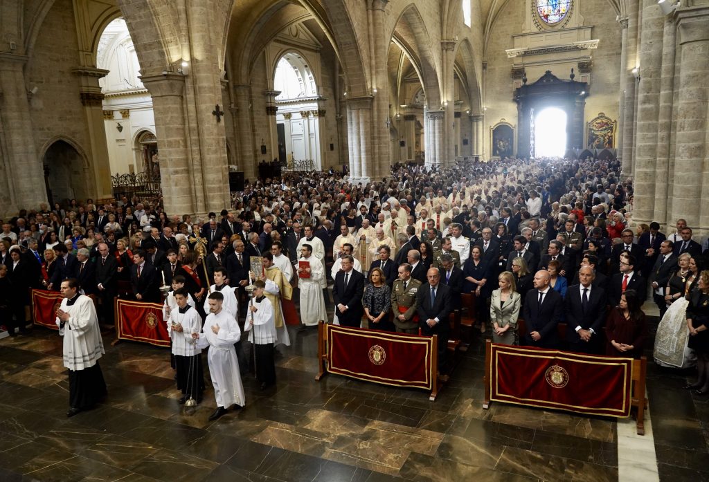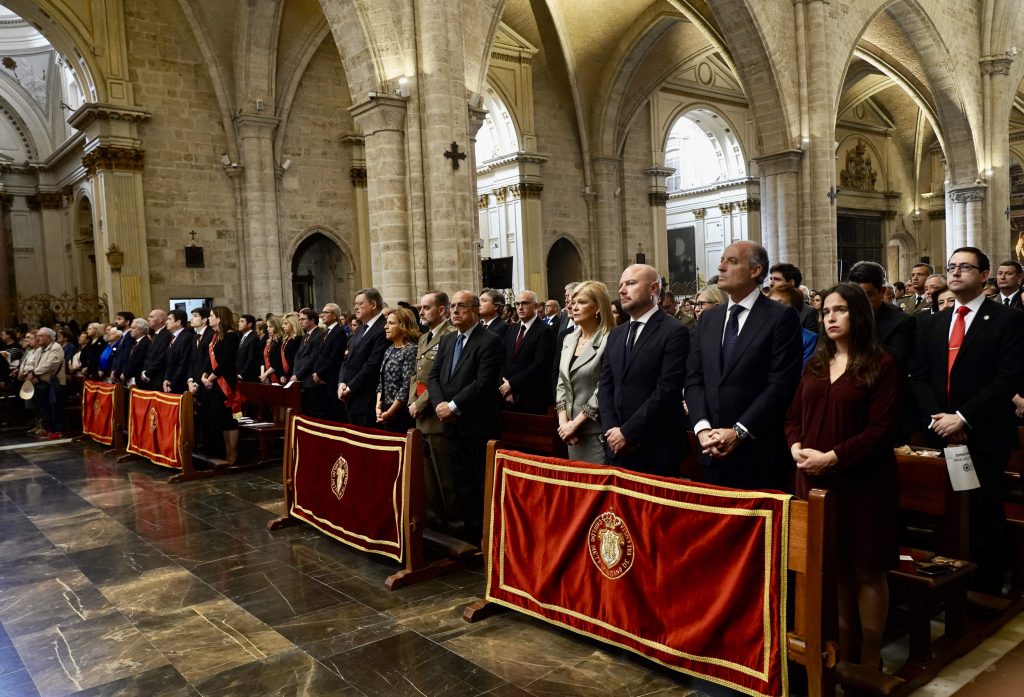 El Arzobispo Benavent ha destacado que “es homenaje de Valencia, de la Comunitat Valenciana, de todos los pueblos de nuestra provincia, representados aquí por sus autoridades, civiles y militares, representación de los colectivos festeros, que han querido hacerse presentes”, como el President de la Generalitat Valenciana, Ximo Puig; el President de Les Corts, Enric Morera; la Delegada del Gobierno, Pilar Bernabé; el Alcalde de Valencia, Joan Ribó, el Presidente de la Diputación, Toni Gaspar; la consellera de Justicia, Interior y Administración Pública, Gabriela Bravo; y el Teniente General Jefe del Cuartel General Terrestre de Alta Disponibilidad, Fernando García-Vaquero. También han asistido numerosas autoridades políticas, civiles, militares y eclesiásticas, entre ellos, el cardenal y arzobispo emérito Antonio Cañizares -al que el Arzobispo ha agradecido el impulso inicial a la celebración-, el rector de la Basilica, Melchor Seguí y el vicerrector Álvaro Almenar, la Camarera de la Virgen, Mª Dolores Alfonso y el Clavario de la Archicofradía de la Virgen, Manuel López Pellicer; el Obispo auxiliar de Valencia, Arturo Ros, el valenciano Obispo de Lleida, Salvador Giménez y los auxiliares eméritos Javier Salinas, Esteban Escudero, Joan Piris, Jesús Catalá, Jesús Murgui, Manuel Ureña y Juan Antonio Reig Plá.