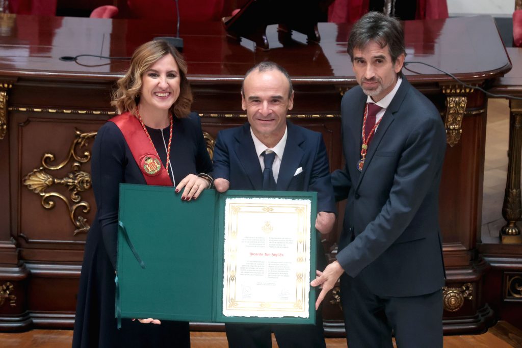 En nombre de todas las personas y entidades galardonadas, ha tomado la palabra el deportista Ricardo Ten, quien ha agradecido el reconocimiento de la ciudad y ha expresado el sentimiento de todos los homenajeados: “nos sentimos afortunados por este reconocimiento de toda la ciudad”. “Cada uno en cada una de nuestras áreas defendemos nuestra cultura, nuestra literatura, nuestra identidad, deportes y colores, nuestra forma de ser y nuestros valores; y los defendemos allá donde vamos”. Ten ha destacado también la labor de cada una de las personas y entidades premiadas “por ser embajadores excepcionales de nuestra ciudad, por elevar nuestro orgullo y por recordarnos que en cada desafío hay una oportunidad”. El deportista ha destacado, finalmente, el papel del Ayuntamiento de València “que, con este reconocimiento resalta la grandeza de nuestra gente, y de su capacidad para brillar tanto en el ámbito local como internacional”.