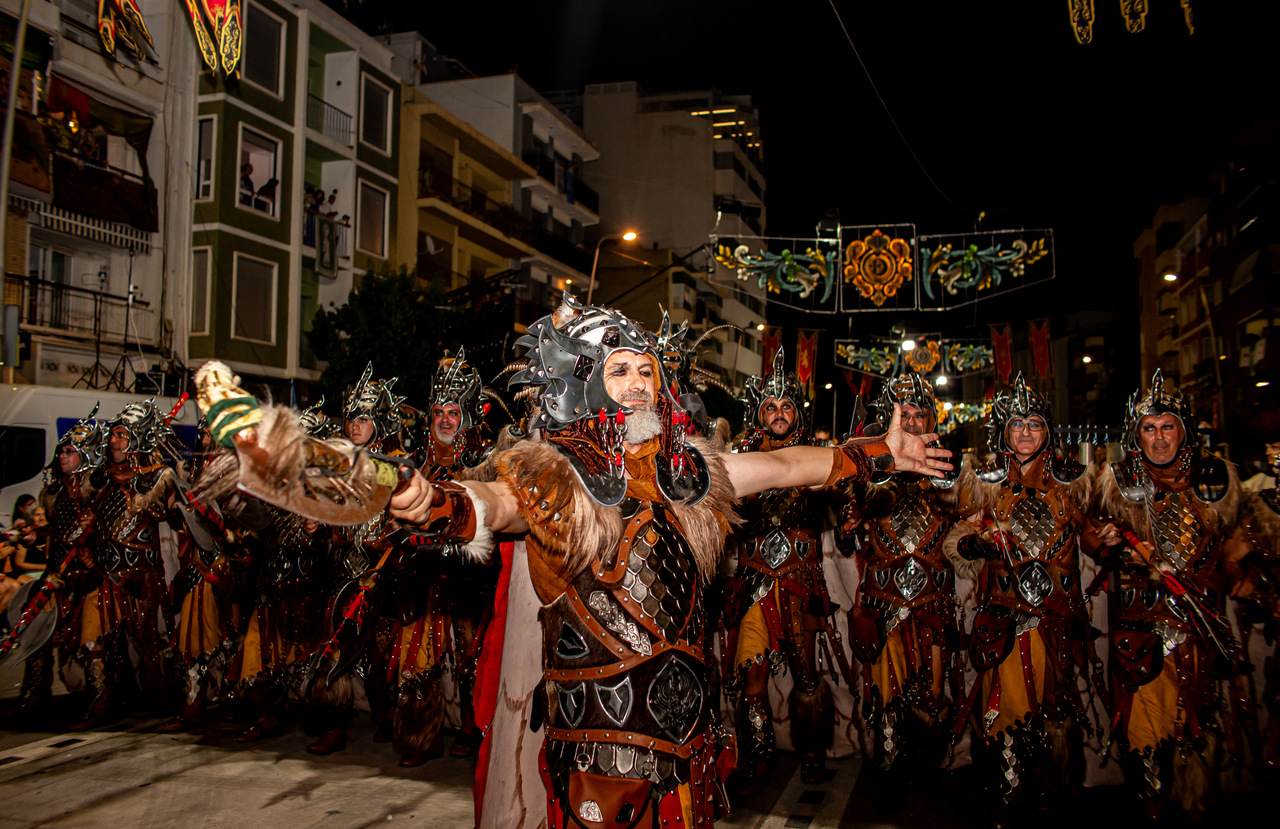 La companyia Negres ostenta enguany el regnat moro. El fester Eugenio Gómez Aperador, representa el rei moro 2025 i serà qui pose punt final a la desfilada de dissabte.
