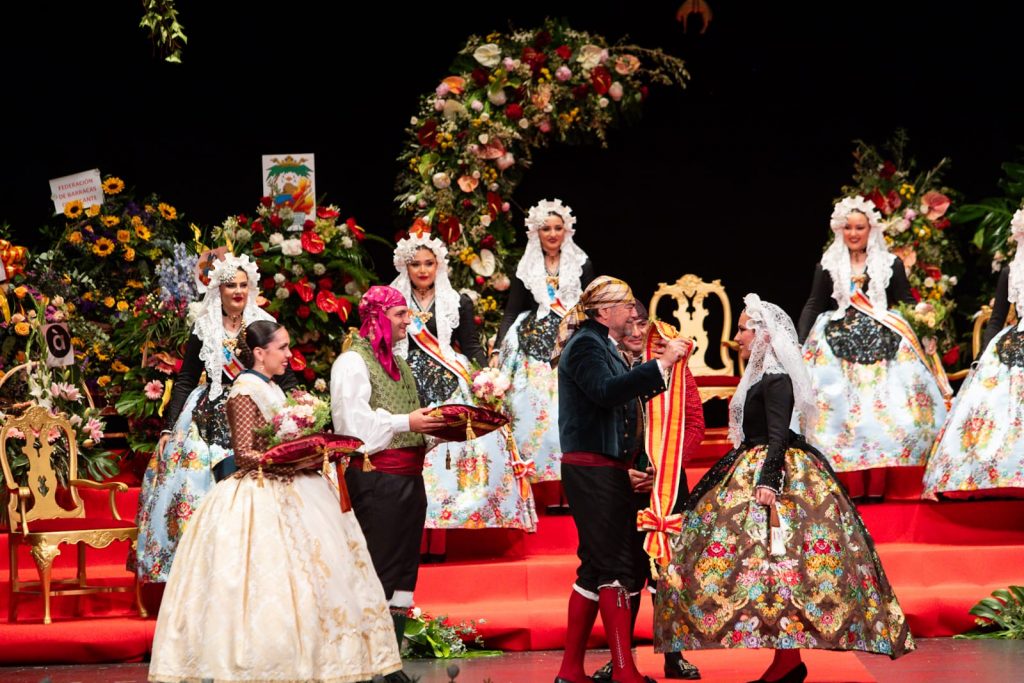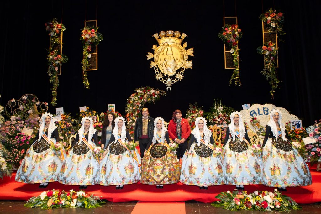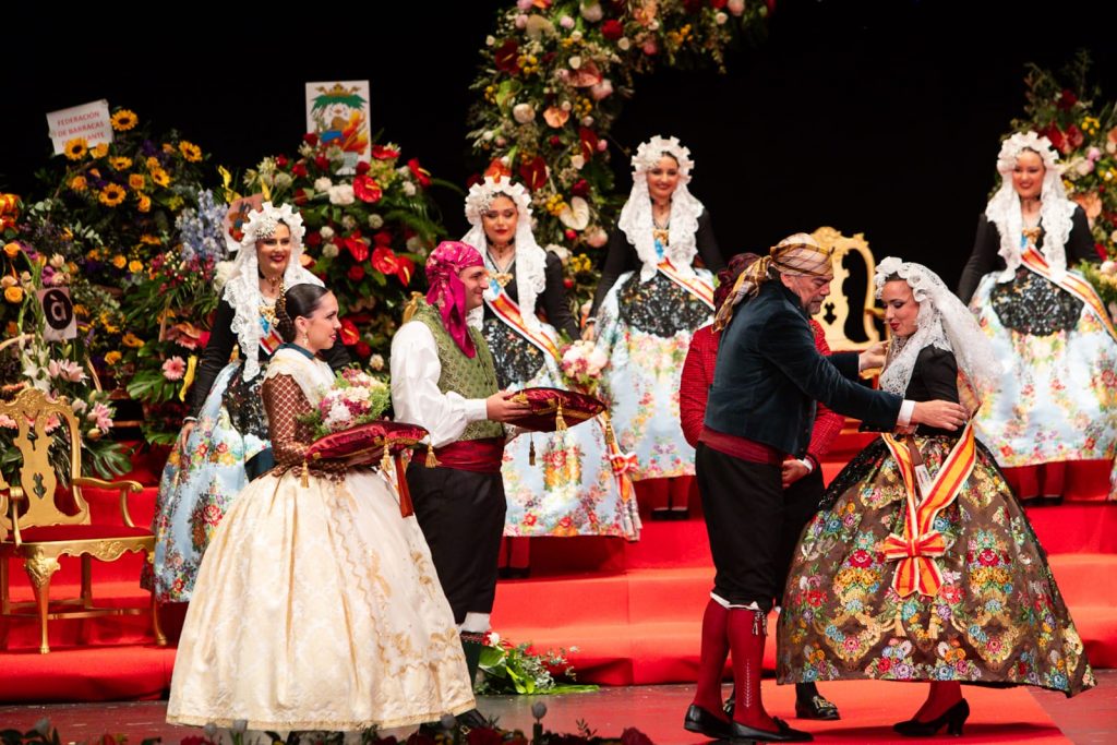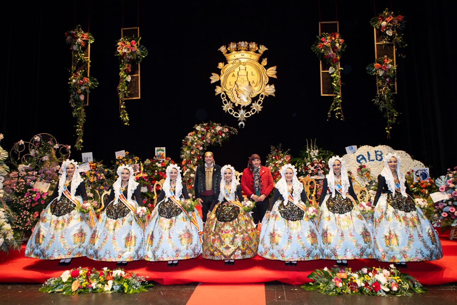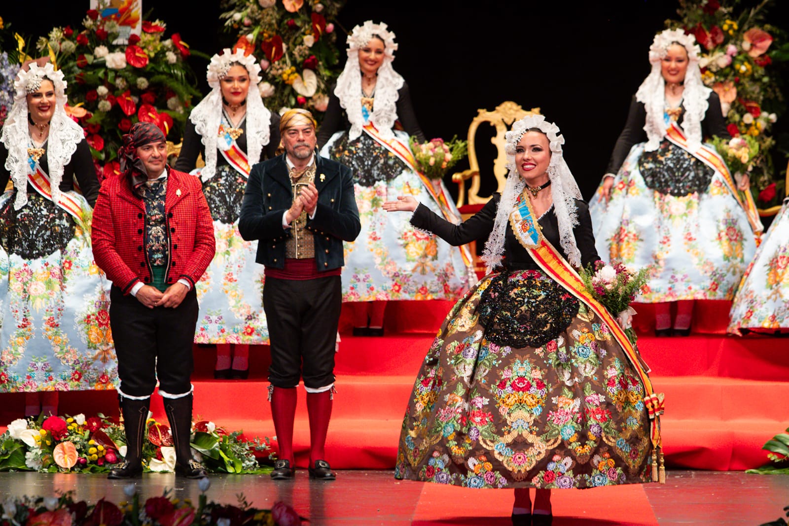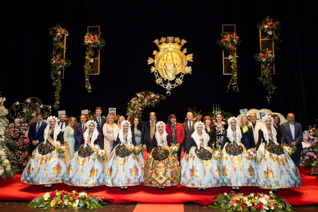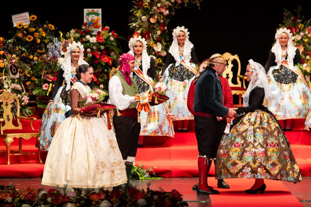 Ha sido Isaac Muñoz, el hermano de la Bellesa, quien le ha colocado a los pies el protocolario cojín. Amigos y familiares, elegidos por ellas mismas, han sacado las bandas y los ramos de flores. La interpretación de los himnos de Alicante, Comunidad Valenciana y España ha puesto fin al acto.