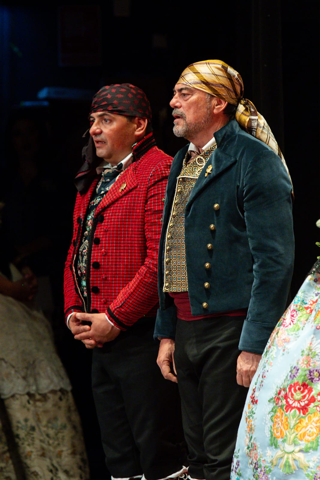 Las Damas de Honor han accedido al escenario por los laterales, mientras la Sinfónica ha interpretado diferentes pasodobles alusivos a cada una de ellass. Ha comenzado con ‘José Ángel Guirao’ (M. A. Ivorra), dirigido a María Huesca; para Alba Caturla ha sonado ‘Ramón Gilabert’ (J. Alfosea); destinado a María Huesca, ‘Dames del Foc’ (Luis Molina); como homenaje musical a Laura Ramírez, ‘Fogueres, sempre Fogueres’ (Luis Torregrosa); en reconocimiento a Lucía González, ‘De Quiroga a Séneca’ (M. A Mas), y como tributo a Mar León, ‘Boda alicantina’ (Moisés Davia). Alba Muñoz ha accedido al escenario por el Patio de Butacas, escoltada por policías locales uniformados de Gran Gala, a los sones del ‘Himno de las Hogueras’ (Luis Torregrosa).