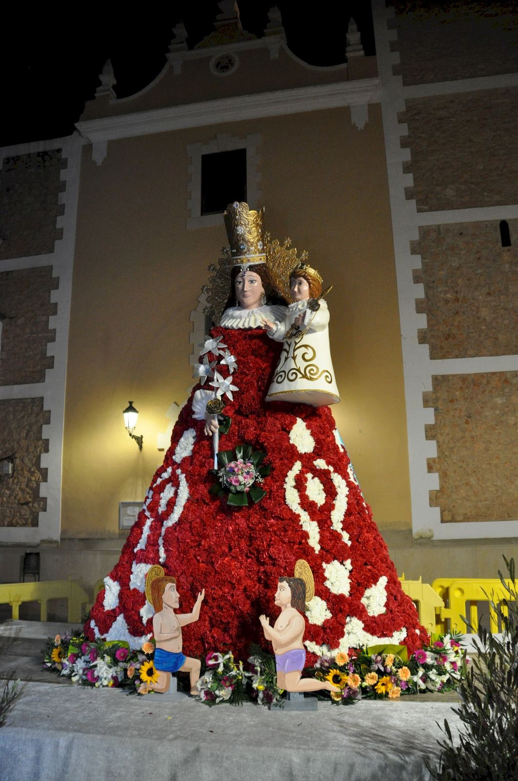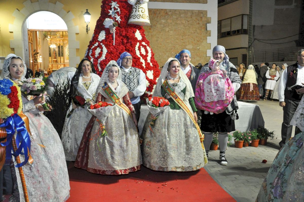 Un día para disfrutar de uno de los actos más esperados por gran parte de los falleros, y especialmente por las falleras mayores, que vieron cómo tuvo que aplazarse por culpa de la previsión meteorológica del pasado día 18 de marzo. Al llegar a la plaza, fue imposible contener las lágrimas frente a la imagen de la Virgen, en el momento de entregar unos ramos que, en muchos casos, iban acompañados de un beso cargado de simbolismo. Una Mare de Déu, cuyo manto, que fueron esculpiendo con maestría, los vestidores y vestidoras de la virgen, con los claveles rojos y blancos, que fueron entregando a su paso los más de 500 falleros que no quisieron perderse esta ofrenda tan esperada.