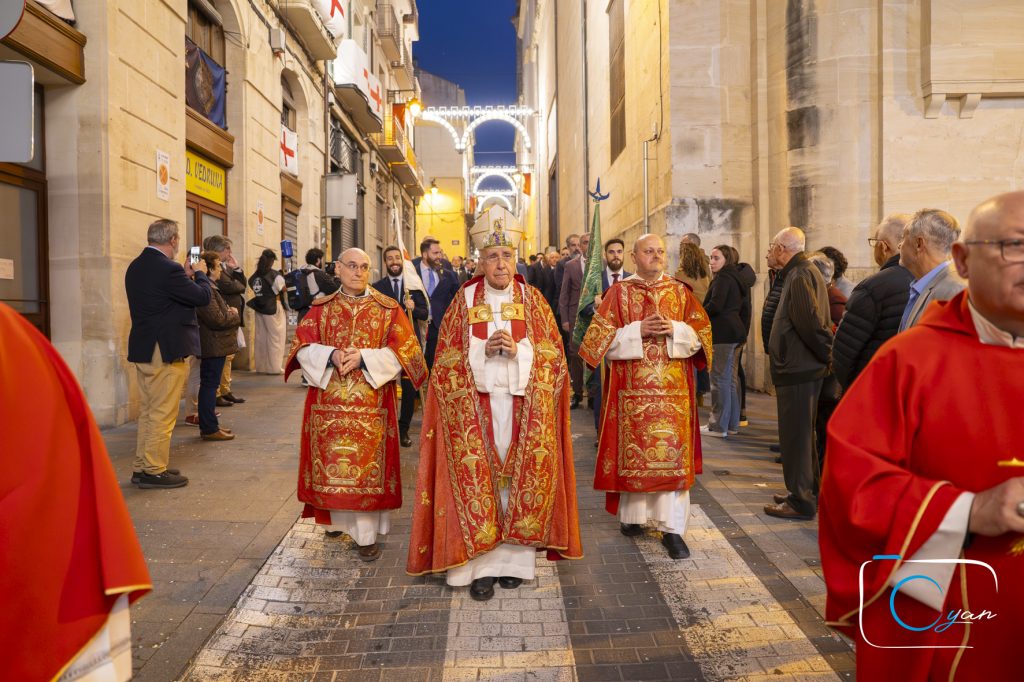 El Obispo emérito Mons. José Vilaplana presidió ayer, en Alcoi, la misa de inicio del Año Jubilar por el 750 aniversario del patronazgo de San Jorge así como la apertura de la Puerta Santa del templo jubilar de San Jorge, en la que pidió que “este año de gracia sea un tiempo propicio para la auténtica renovación de nuestro pueblo, que la intercesión poderosa y el ejemplo de San Jorge infunda en cada uno de nosotros el coraje para afrontar las pruebas, el desapego para dejar atrás lo caduco y la caridad para mirar al prójimo con vuestros ojos de misericordia”.