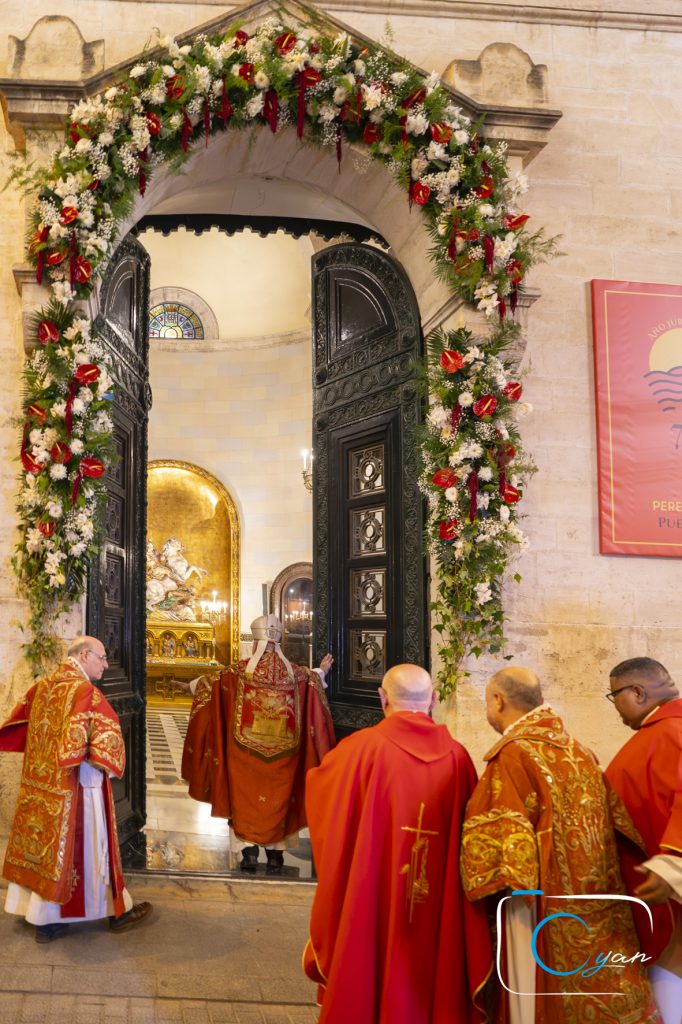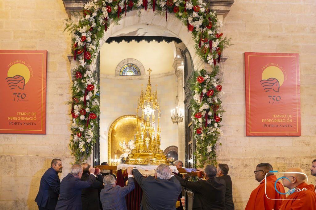 Tras oficiar la misa en la parroquia arciprestal de Santa María, coincidiendo con el día de la fiesta en honor a San Jorge mártir, Mons. Vilaplana – Obispo emérito de Huelva, enviado especial de Mons. Enrique Benavent, Arzobispo de Valencia- abrió la Puerta Santa tras una procesión con la reliquia del santo.