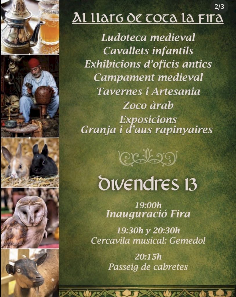 El concejal de Cultura y Fiestas, Carles Muñoz, explica: “Tras tener que cancelar la feria en su momento, hemos trabajado para ofrecer una nueva programación completa y atractiva, para mantener la esencia medieval y garantizar que vecinos y visitantes puedan disfrutar de un evento de calidad junto a la familia”.