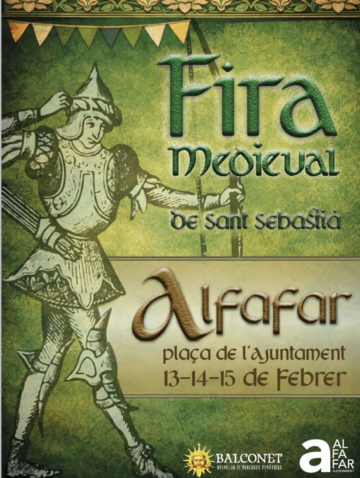 La Feria Medieval de Alfafar contará del 13 al 15 de febrero con tabernas, puestos de artesanía, zoco árabe, campamento medieval, exhibiciones de oficios antiguos, ludoteca medieval, caballetes infantiles, una granja con aves rapaces y diversas exposiciones, que convertirán el casco urbano de Alfafar en un auténtico escenario de época.