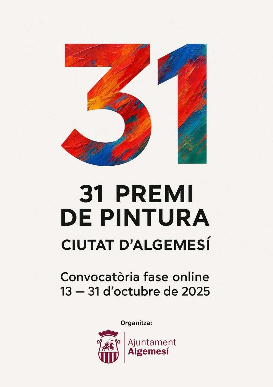 L’Ajuntament d’Algemesí ha obert la convocatòria del XXXI Premi de Pintura «Ciutat d’Algemesí», un certamen que, amb més de tres dècades d’història, s’ha consolidat com un dels guardons més prestigiosos del panorama artístic espanyol.