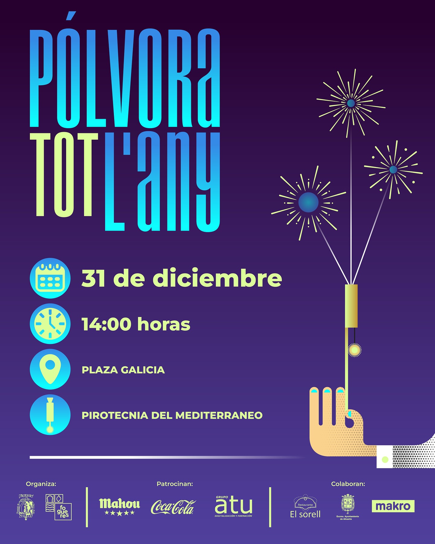 Justo el día 31 de diciembre, será la Federació de Fogueres, que recupera con ambiente previo a Nochevieja el último disparo del año. Esta mascletà será en la Plaza Galicia, a las 14h (Sector 1) y que correrá a cargo de la Pirotecnia del Mediterráneo, incluida en el ciclo «Pólvora tot l´any«.