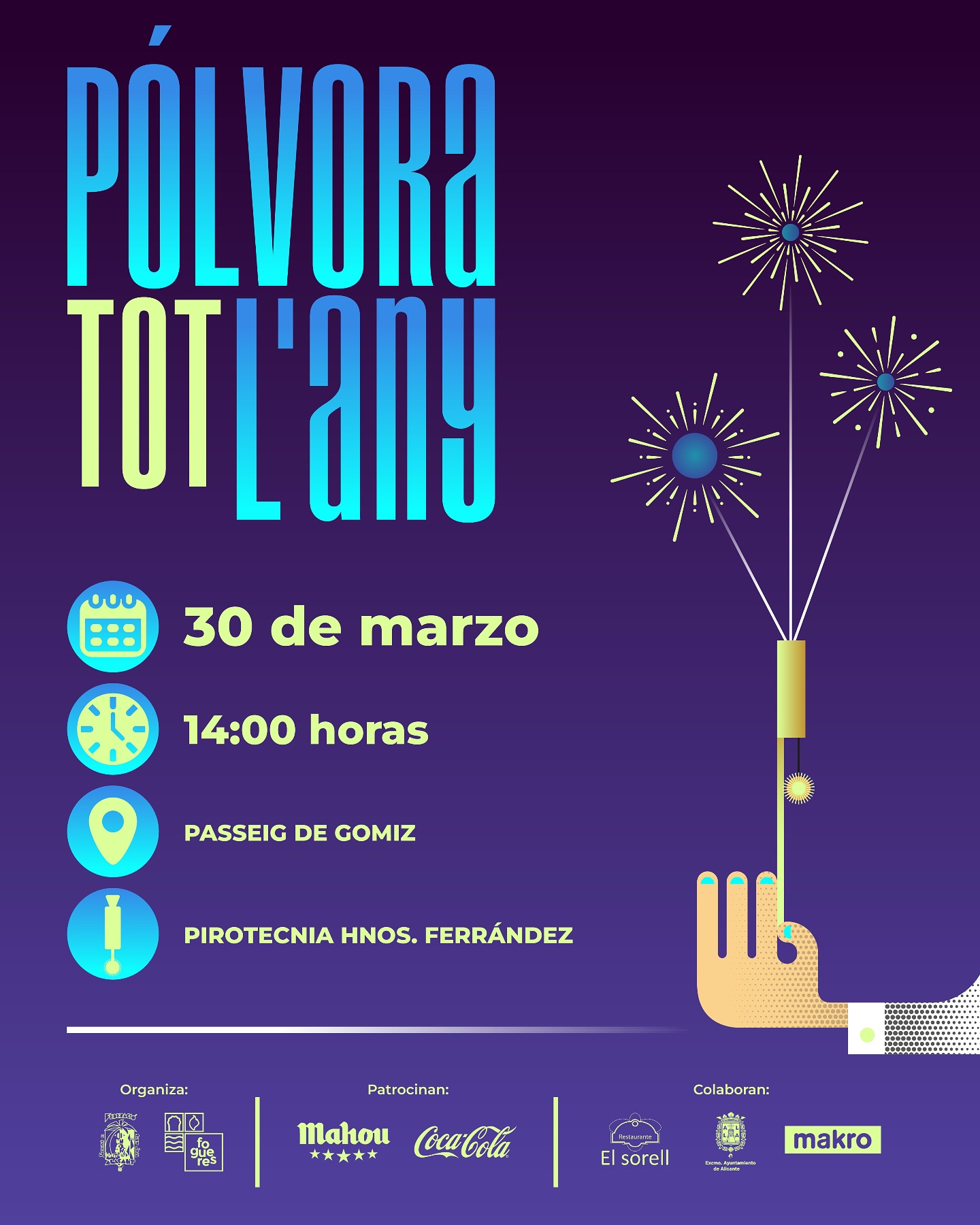 El olor a humo, el ruido de los petardos y el silbido de los cohetes en el cielo alicantino volverá a ser el protagonista este domingo 30 de marzo. El Paseo de Gómiz, en un escenario privilegiado frente a la playa de El Postiguet, será el epicentro del estruendo pirotécnico alicantino con una mascletà el domingo 30 de marzo a cargo de Hermanos Ferrández.