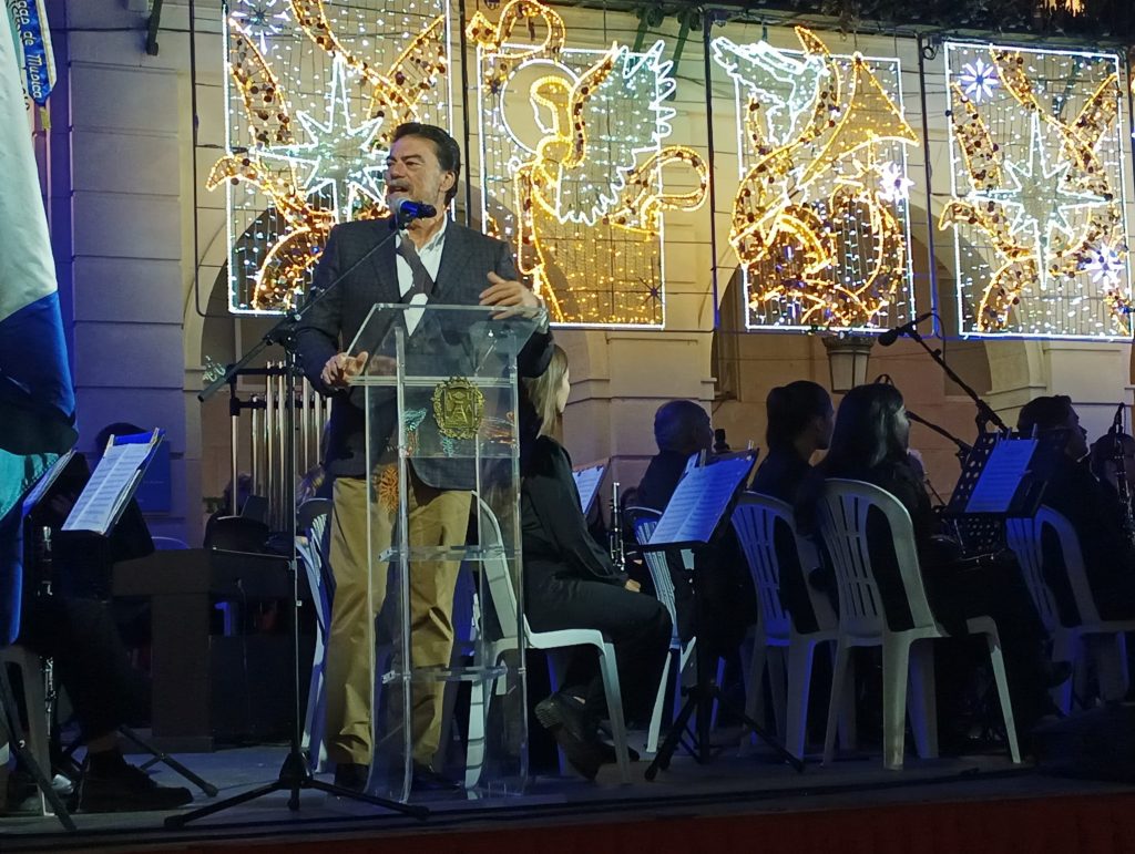 El alcalde Luis Barcala ha inaugurado este domingo el Belén Gigante, que figura en el Libro Guinness de los Récords desde 2020, situado en la Plaza del Ayuntamiento. El primer edil ha explicado que “representa una escena de luz y esperanza, que simboliza la Navidad”. También ha expresado su orgullo “por la monumental manera que tenemos los alicantinos de celebrar el Nacimiento de Jesús”. El primer edil, acompañado por la concejala de Fiestas, Cristina Cutanda, e integrantes de la Corporación Municipal, ante una plaza abarrotada, ha finalizado poniendo en valor “la impagable promoción exterior de esta iniciativa que convierte a Alicante en un referente mundial de estas celebraciones”.