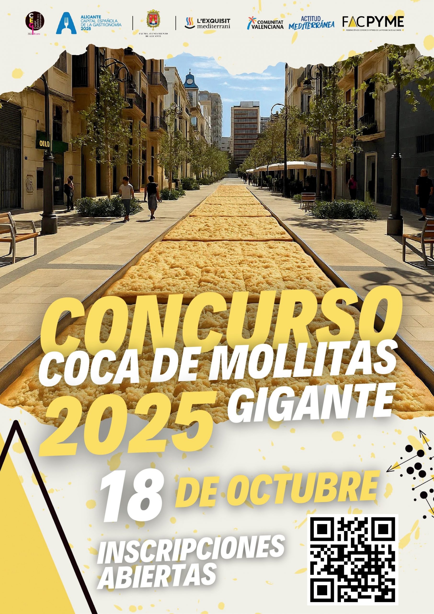 La coca de mollitas de récord de Alicante se colocará este sábado 18 de octubre en la avenida de la Constitución en un evento que contará con música y animación desde las 18 a las 21 horas. La actividad está diseñada para que los alicantinos celebren el nombramiento de Alicante como Capital Española de la Gastronomía 2025 y puedan degustar gratuitamente este típico producto alicantino.