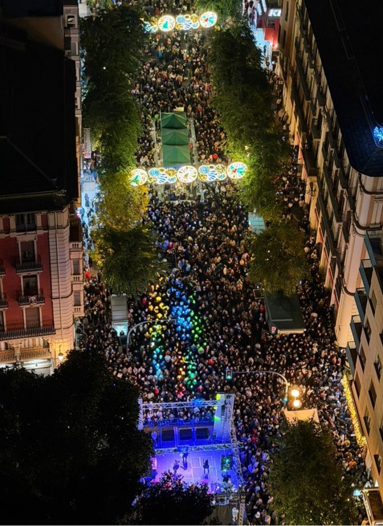 La gran mayoría, después de recibir a 2026 en la Plaza del Ayuntamiento, ha regresado a la Rambla. Allí han vuelto a sumarse a los miles de personas que han escuchado las campanadas desde la megafonía instalada en el escenario. El conjunto de los asistentes se ha sumado, a continuación, a la verbena que han protagonizado los 11 componentes de la orquesta Athenas. Sus temas, incluyendo los éxitos de siempre, han contado con el respaldo de 30.000 vatios de sonido, 40.000 de una iluminación espectacular, y el soporte visual de una pantalla LED.