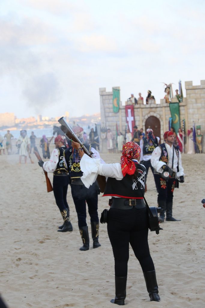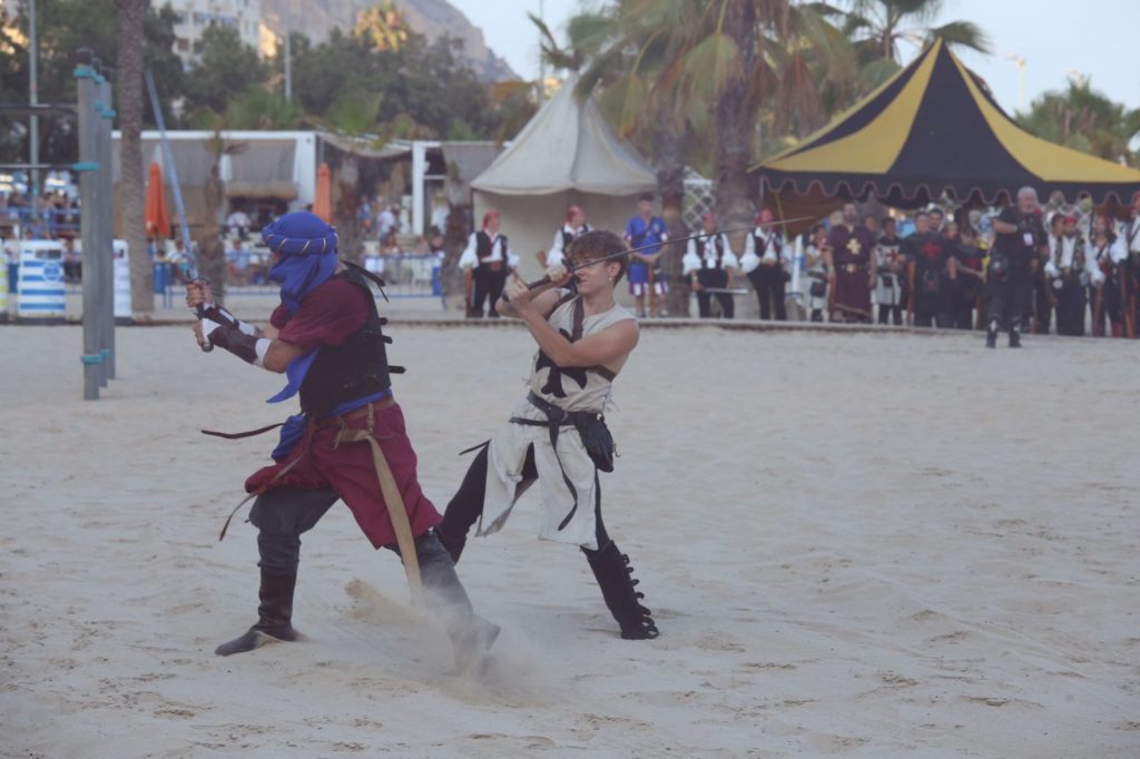 Alicante ha recreado este sábado la batalla que se desencadenó en 1599 cuando los piratas berberiscos desembarcaron en la costa y fueron repelidos por las tropas cristianas. Ha ocurrido durante el Desembarco organizado por la Federación de Moros y Cristianos de Alicante (FMYCA), que preside José Pascual Saura. El escenario natural ha sido la playa del Postiguet. A ella han llegado festeros moros a bordo de siete faluchos, quienes se han enfrentado a un centenar de cristianos con disparos de arcabucería. El alcalde Luis Barcala, acompañado por la concejal de Fiestas en funciones, Cristina García, e integrantes de la Corporación Municipal, ha explicado que «el Desembarco se ha consolidado como un referente en el agosto alicantino. A la representación en sí se le suma, además, el lugar donde se desarrolla que permite que sean decenas de miles de personas las que lo puedan contemplar en directo».