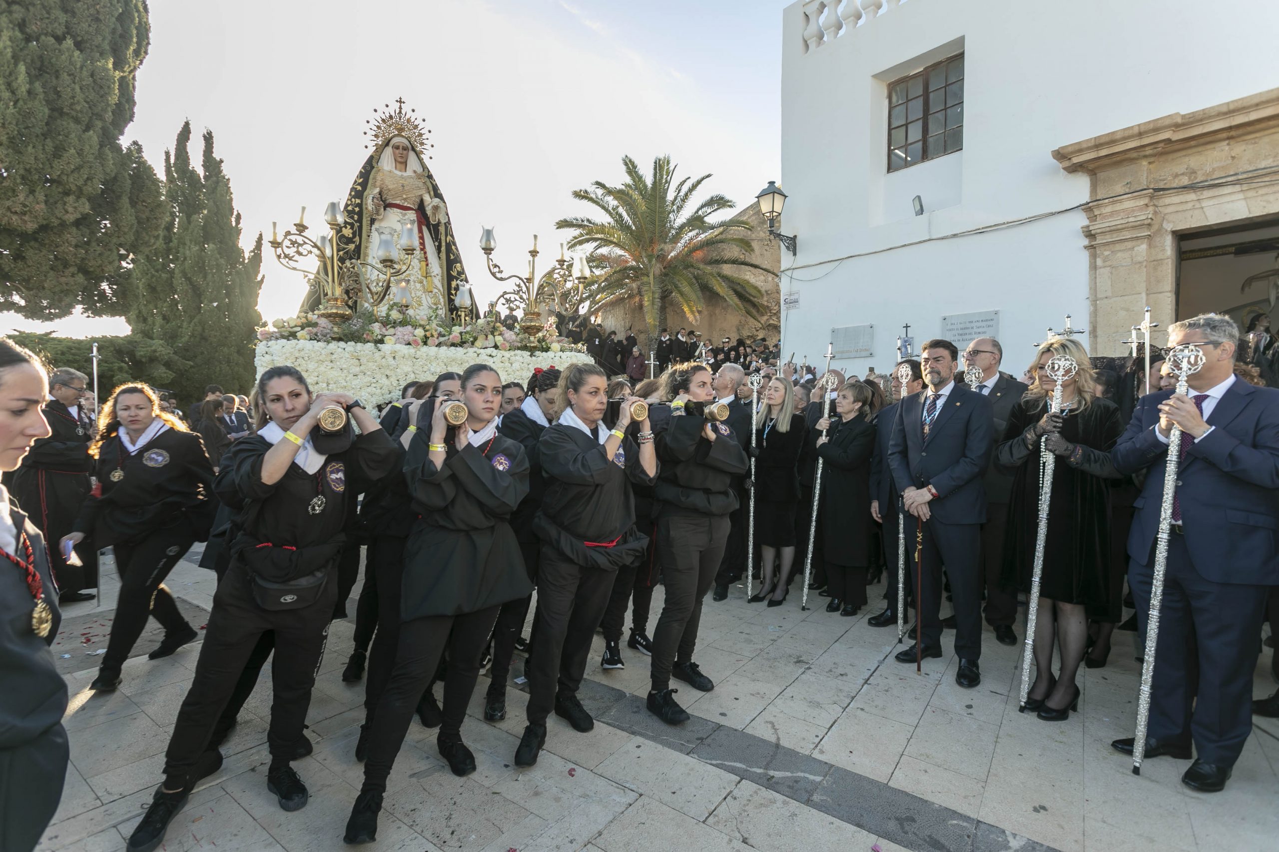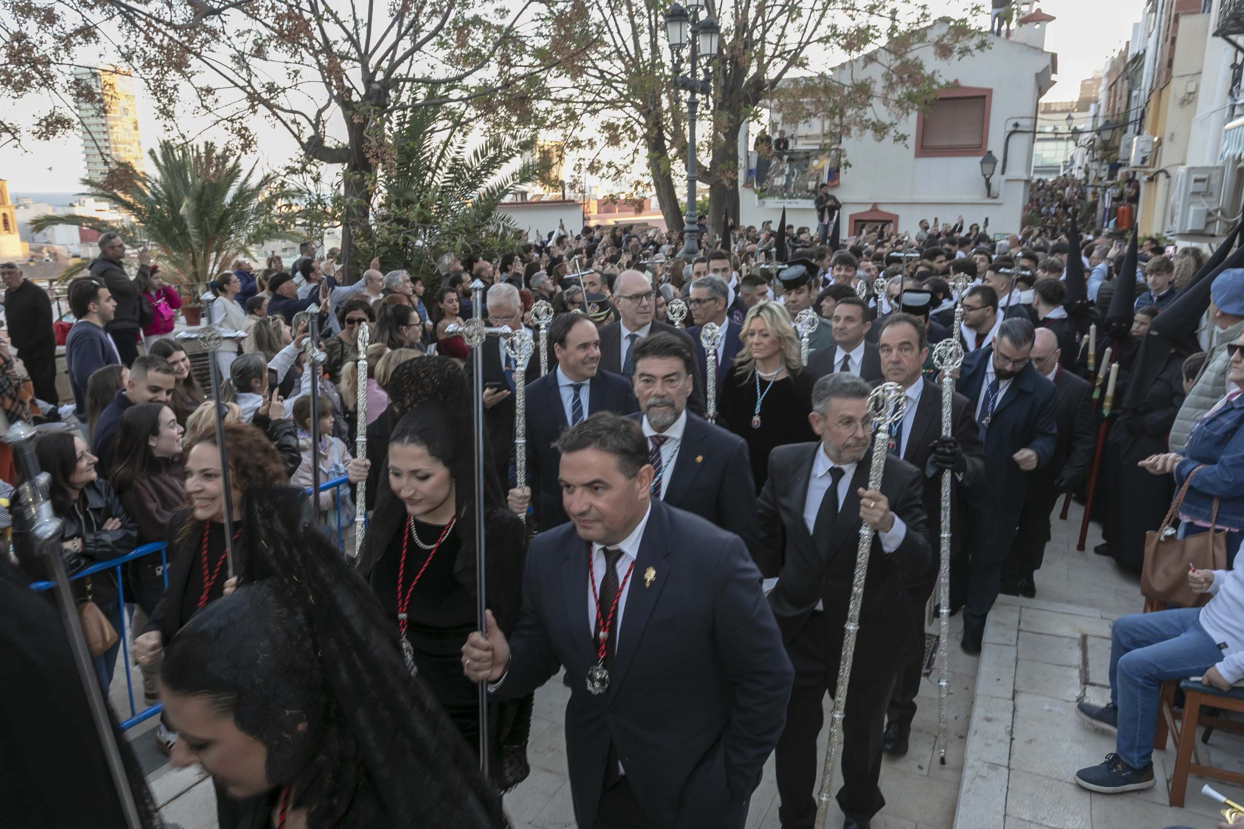 El primer edil, poco antes de comenzar la procesión, ha explicado que “esta hermandad, con sus singularidades, es un claro ejemplo de cómo vivimos y sentimos los alicantinos la Semana Santa. Se fusionan en ella sentimientos inenarrables, revestidos de una pasión sin límites. Es una procesión que está en la esencia del barrio durante todo el año y que se incrementa según se acerca el día y la hora de la procesión».