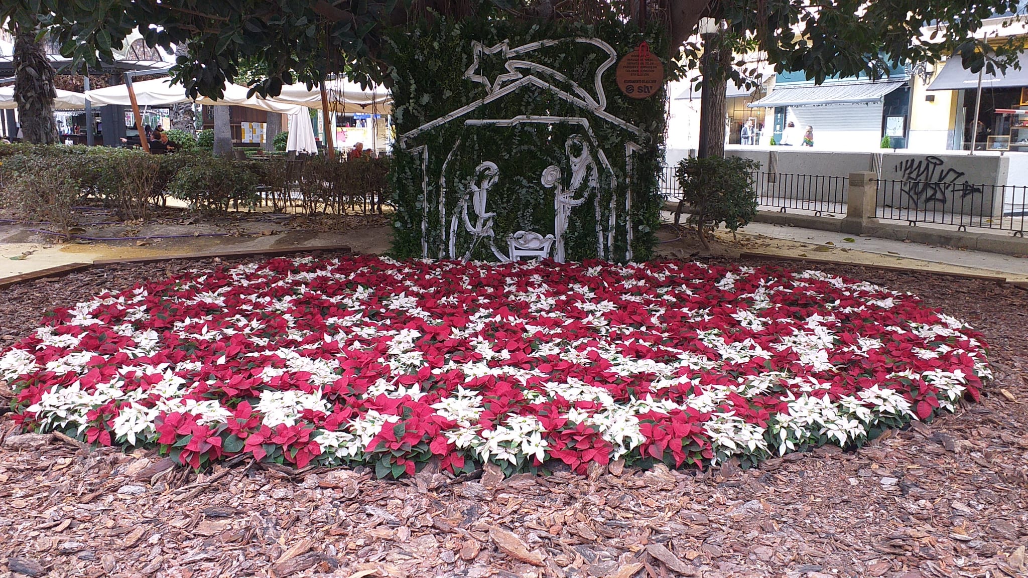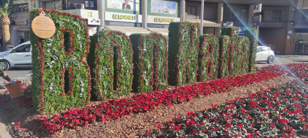 Desde el servicio municipal de Parques y Jardines ‘Brota Alicante’ se ha puesto en marcha la instalación de la decoración navideña con planta viva, como puedan ser los carteles de Feliz Navidad y Bon Nadal, situados en el inicio de la Explanada y frente a la Estación de Ferrocarril, así como los arcos florales que enmarca los pórticos principales de acceso al Ayuntamiento. También se ha adornado la fachada de la concatedral de San Nicolás y se han plantado flores de pascua y de otras especies de invierno en los parterres principales de la ciudad.