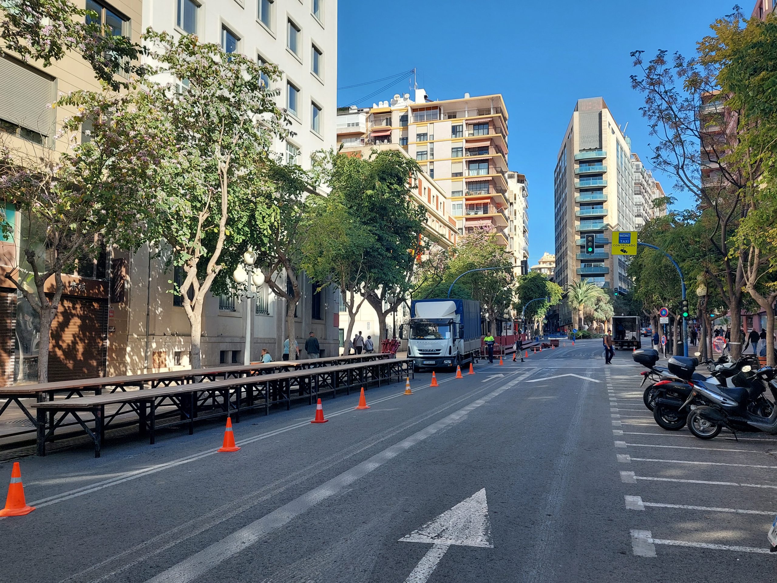 - Los primeros detalles de la Carrera Oficial comienzan a apreciarse en la Rambla con la instalación de las infraestructuras de los palcos