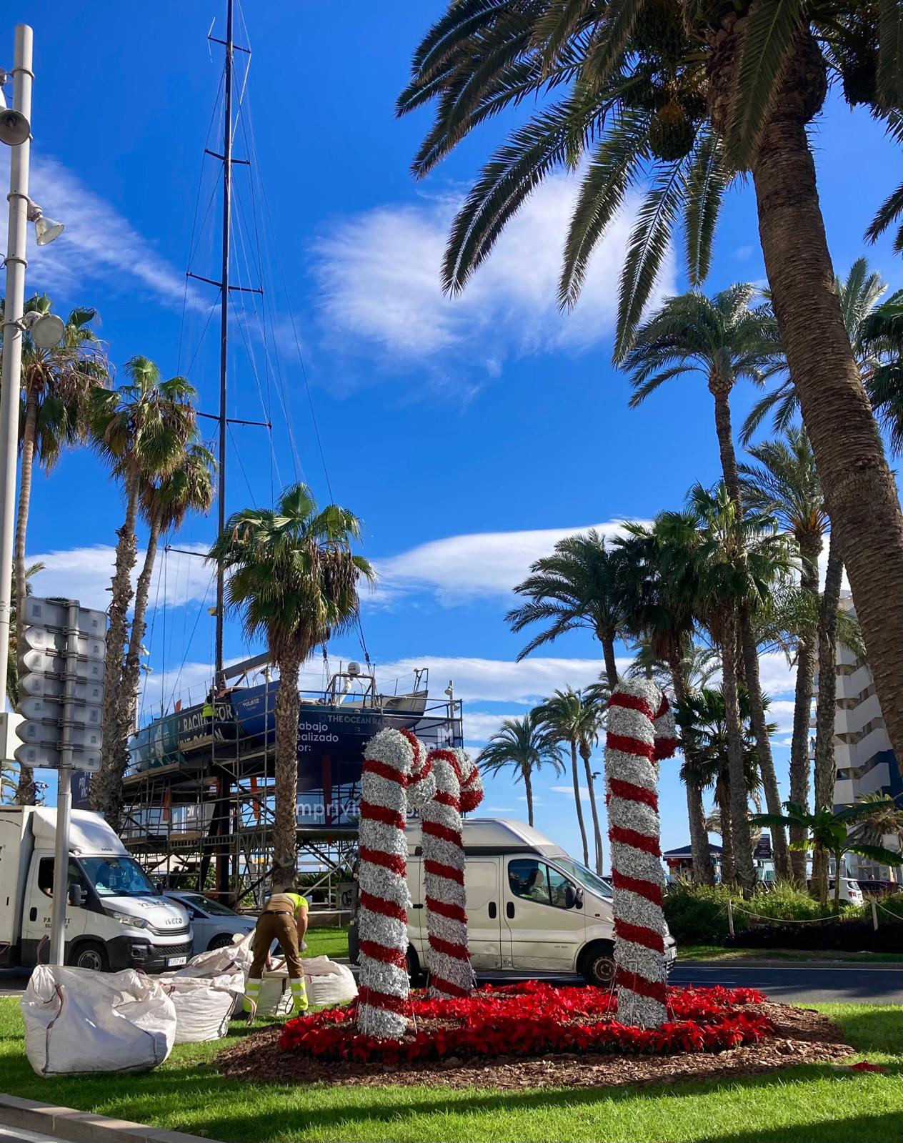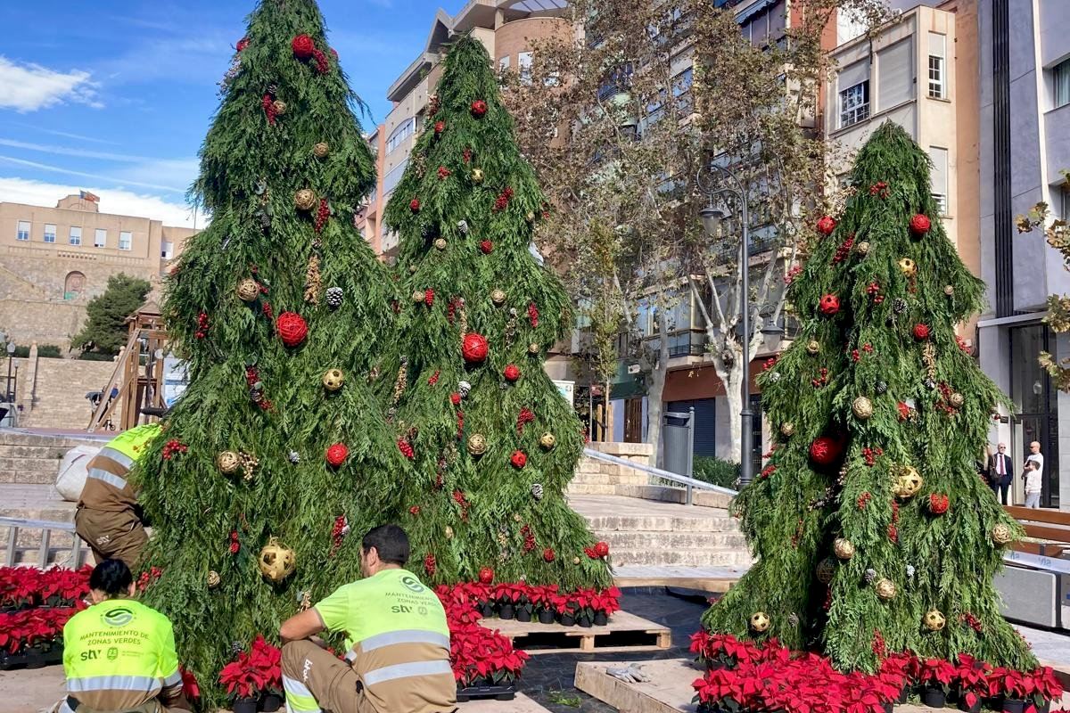 El servicio municipal de Parques y Jardines ‘Brota Alicante’ ha iniciado la instalación de la decoración navideña con planta viva y flor preservada en espacios emblemáticos de la ciudad, como puedan ser los mensajes de bienvenida de ‘Feliz Navidad’ y ‘Bon Nadal’, en el inicio de la Explanada y frente a la Estación de Ferrocarril, respectivamente, así como los adornos florales imitando bastones de caramelo en la plaza Puerta del Mar o los árboles de Navidad en Marvá, frente a las escalinatas del Instituto Jorge Juan.