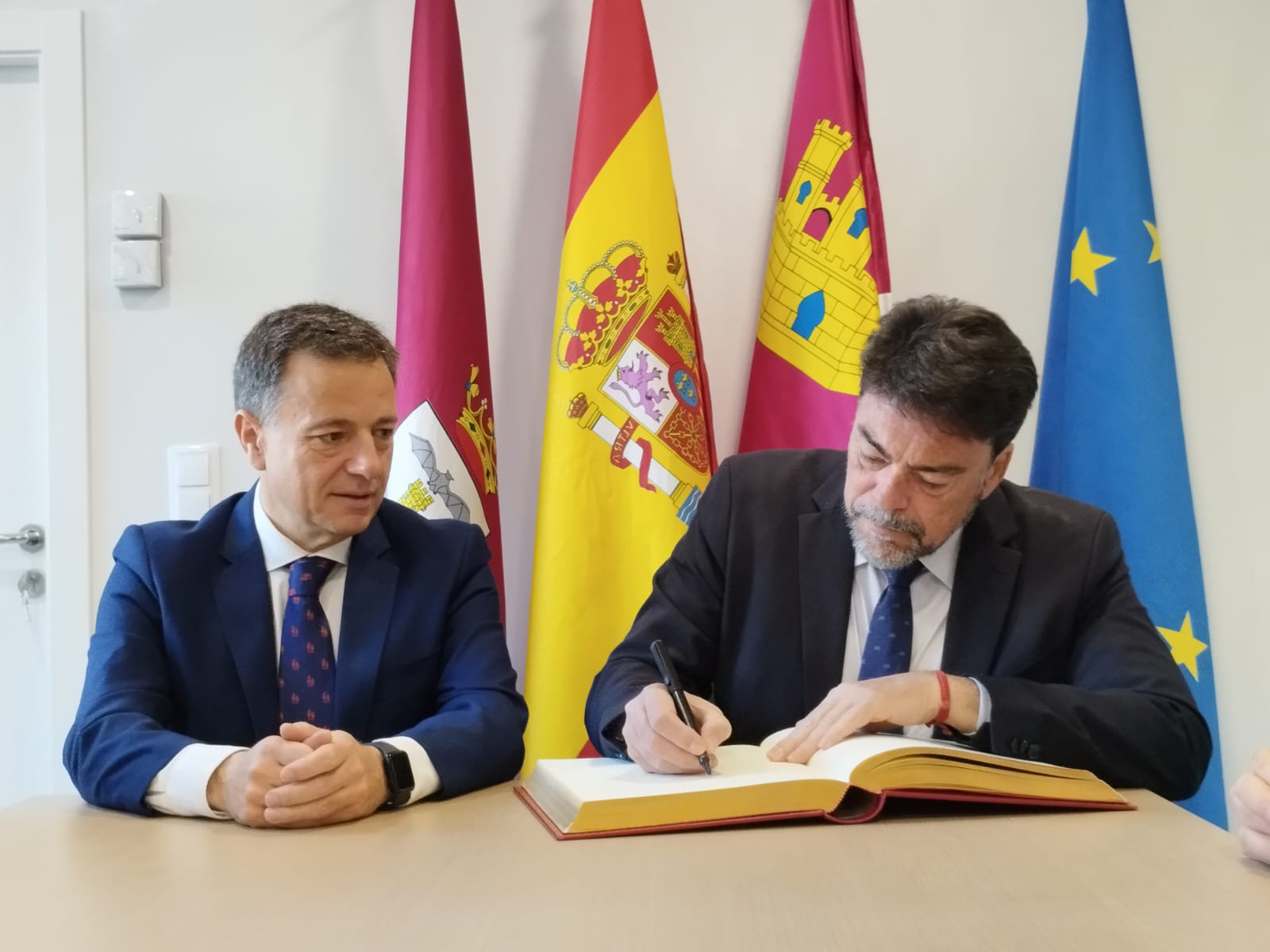 Los alcaldes de Alicante, Luis Barcala, y Albacete, Manuel Serrano, han sellado este sábado un protocolo de colaboración entre ambos municipios en materia cultural, turística y de fiestas. El acuerdo se ha sellado en Albacete, en el marco de la celebración de las Convivencias de las candidatas a Bellea del Foc, que se celebran este fin de semana en la ciudad castellanomanchega.
