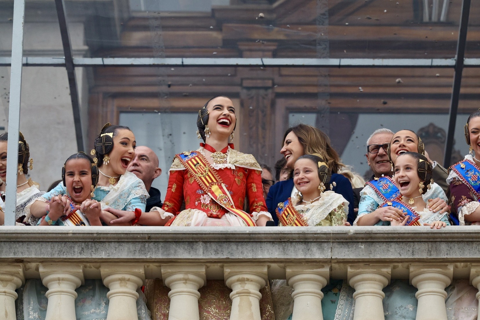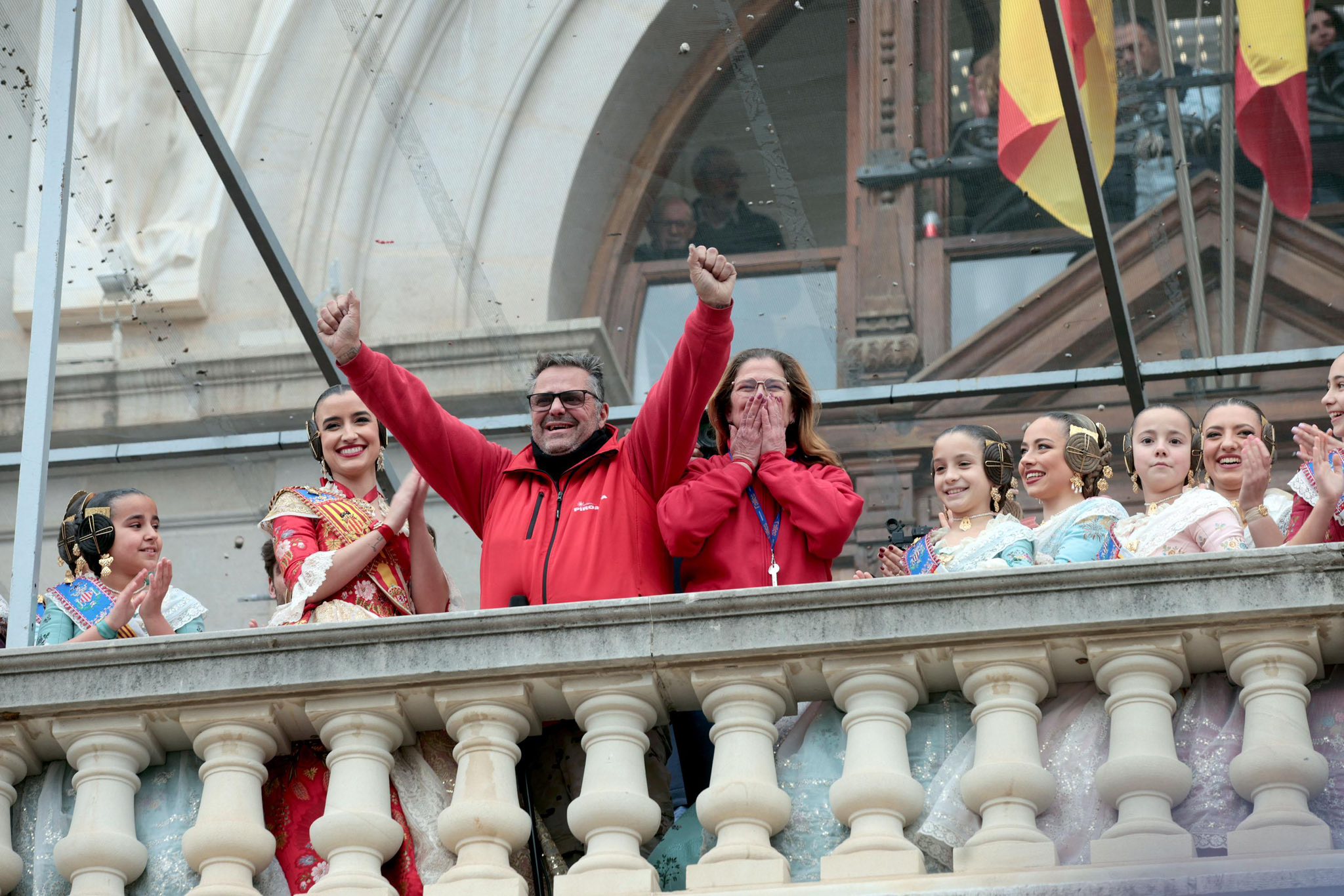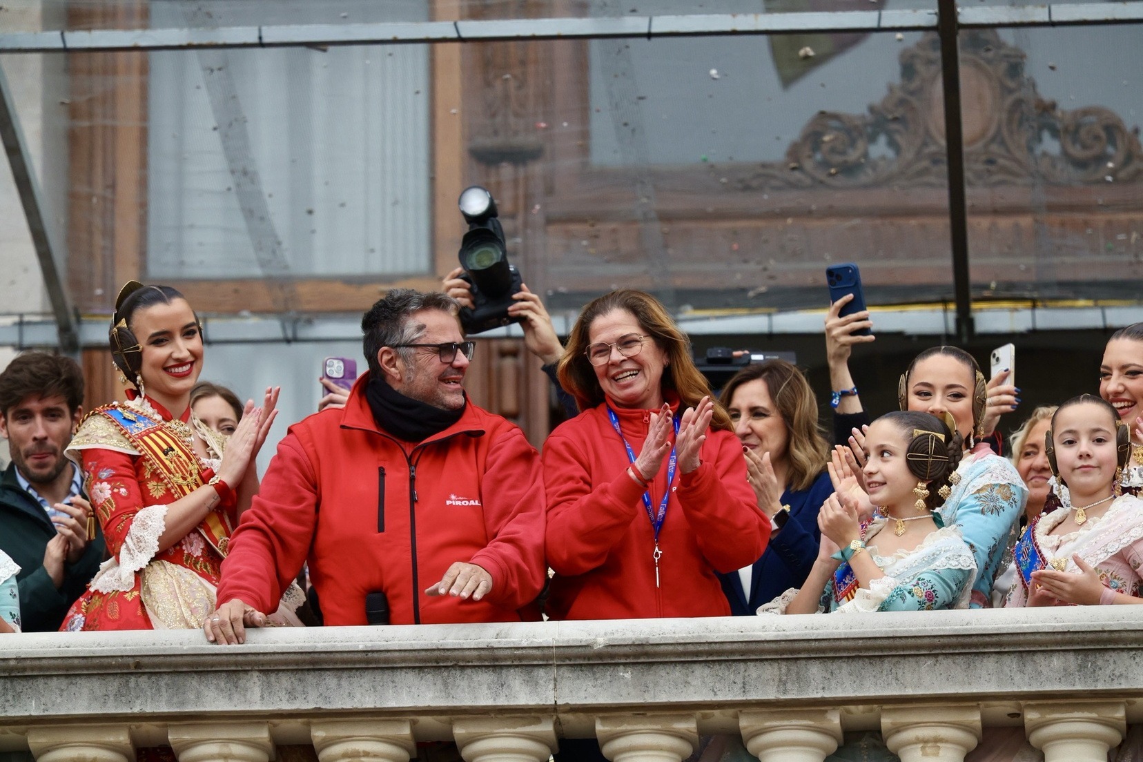 En el Balcón del Ayuntamiento, las Falleras Mayores de Valencia, Carmen Prades y Marta Mercader, han disfrutado de esta tercera mascletà de marzo, acompañadas por sus Cortes de Honor y de la alcaldesa de nuestra ciudad, María José Catalá, y Santi Ballester, concejal de Fallas y presidente de Junta Central Fallera. Además, nuestras máximas representantes han dicho hoy el ‘Senyor Pirotècnic’ en lengua de signos con motivo del Día Mundial de la Audición.