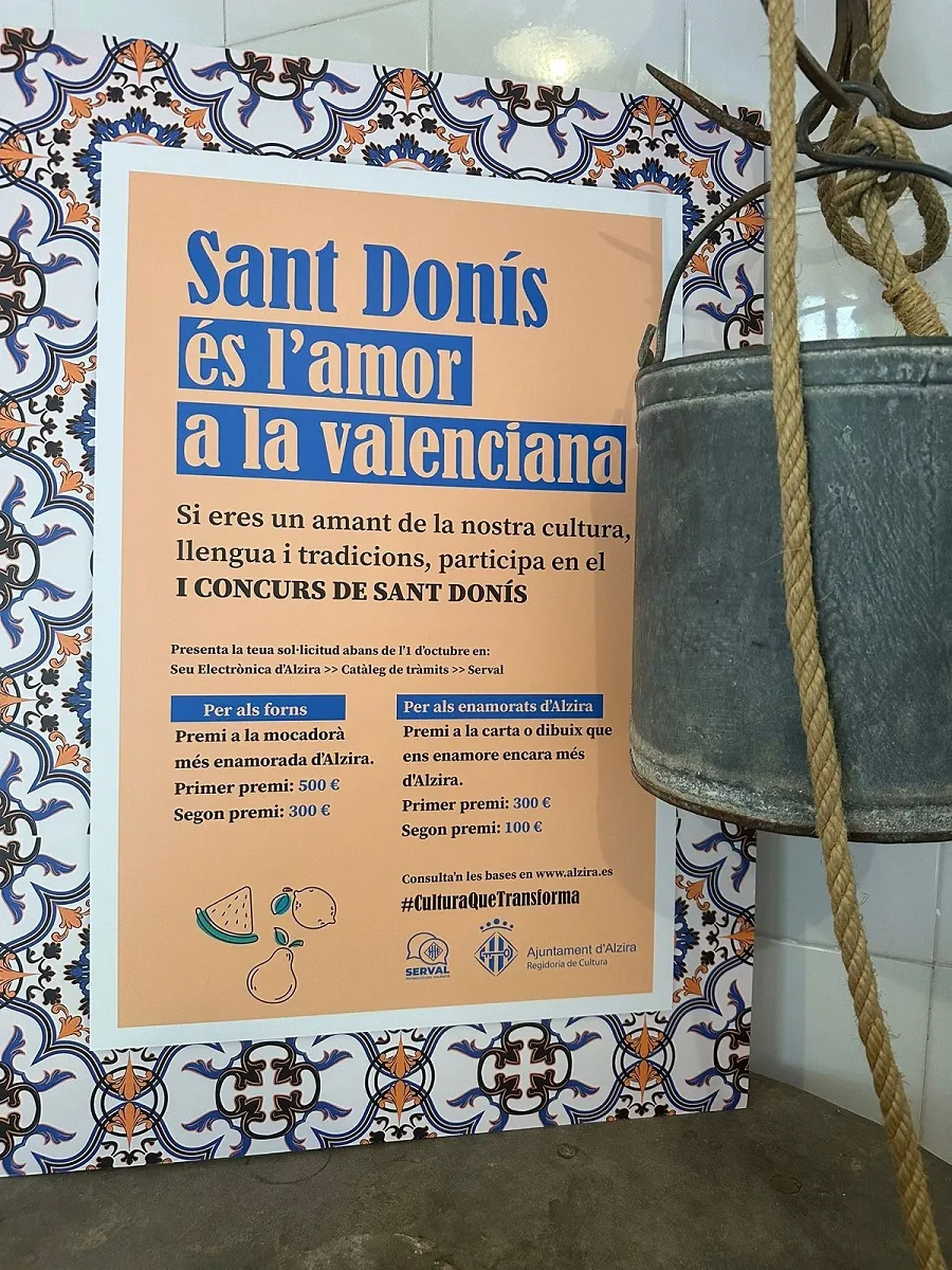 L’Ajuntament d’Alzira, a través del Serval, ha llança un concurs on l’amor i la dolçor són els protagonistes este 9 d’octubre. El concurs de Sant Donís té un doble vessant: d’una banda, va adreçat als forns i premiarà la mocadorà més enamorada d’Alzira i, d’altra, a la ciutadania, i premiarà les cartes i dibuixos que destil·len més amor.