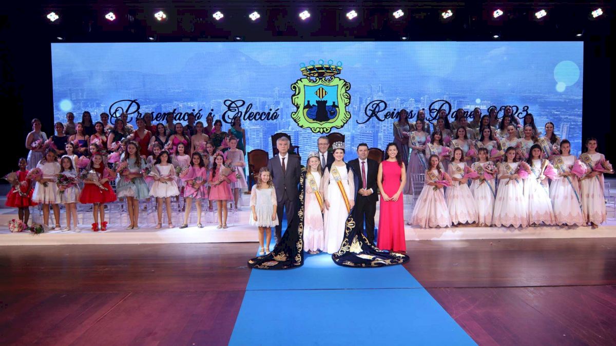 La sala de fiestas Benidorm Palace ha vuelto a acoger este mediodía uno de los actos más importantes y emotivos del ámbito festero de la ciudad: la elección de las reinas de sus Festes Majors Patronals. La joven Angélica Morenilla Such y la niña Daniela Talavera Ventura son, desde hoy las máximas representantes de les Festes Majors Patronals de Benidorm. El acto congregó a cerca de 1.500 personas que no quisieron perderse ni un detalle de la gala.