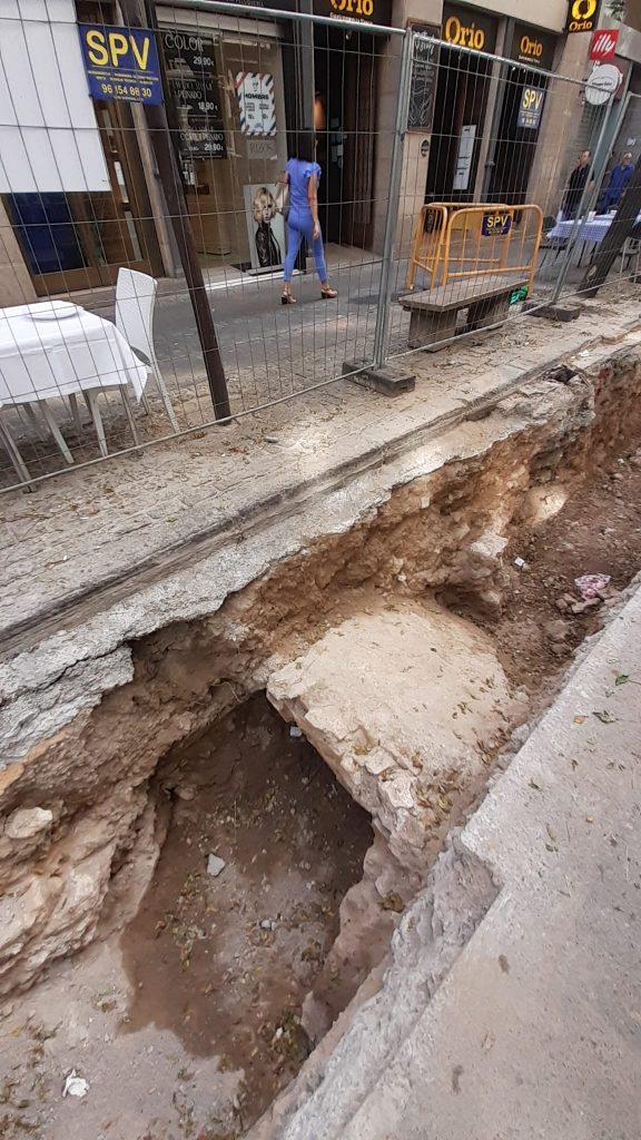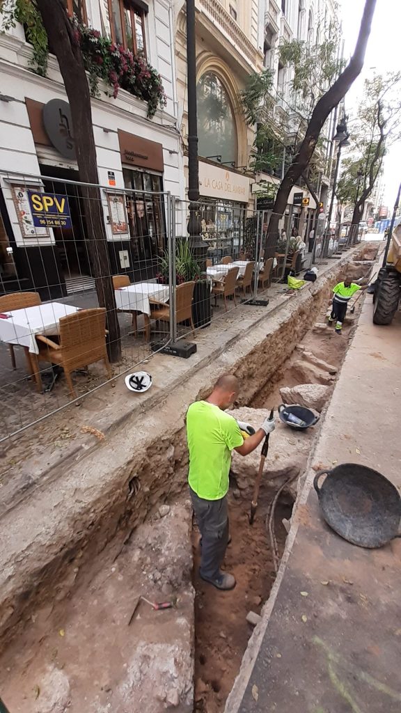 Las excavaciones efectuadas en la calle San Vicente para llevar a cabo las obras de renovación de las canalizaciones de agua potable en este ámbito, que ya están prácticamente finalizadas, han sacado a la luz nuevos restos de la antigua muralla islámica de Valencia. El hallazgo se ha producido a la altura de la calle de San Fernando, en el tramo final de las obras, lo que ha obligado a variar la traza inicialmente prevista en el proyecto de la nueva tubería, y desplazarla lateralmente. Ello ha generado afecciones a otros elementos que se resolverán antes de la instalación de los tubos, dado que el resto de tubería está ya montada. Tal como se ha anunciado desde la Concejalía, se mantiene el 1 de diciembre como fecha prevista para la finalización de las obras.