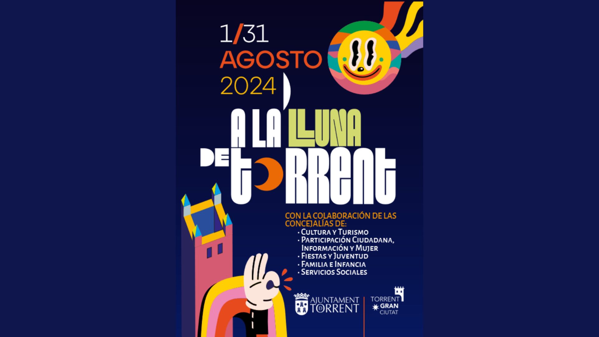 Finalizadas las fiestas patronales, el Ayuntamiento de Torrent ya prepara su nueva iniciativa «A la Lluna de Torrent, un Torrent de Cultura i de Festes». Durante todo el mes de agosto la ciudad acoge actividades culturales en todos los barrios y urbanizaciones. Un mes en el que se llevarán a cabo 40 espectáculos en casi 20 ubicaciones diferentes.