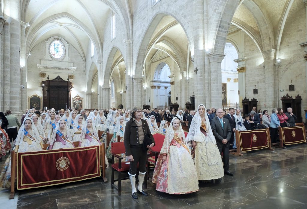A la misa han asistido la Fallera Mayor de Valencia, Berta Peiró, la Fallera Mayor infantil, Lucía García, acompañadas por sus Cortes de Honor, el concejal de Fallas, miembros de la Junta central Fallera, el Gremi de Fusters, representantes de la Bellea del Foc d’Alacant y de la Magdalena de Castelló, así como de las Casas regionales, y el Arzobispo ha saludado “con especial afecto” a los que por su situación de vulnerabilidad no han podido estar presentes en la eucaristía.