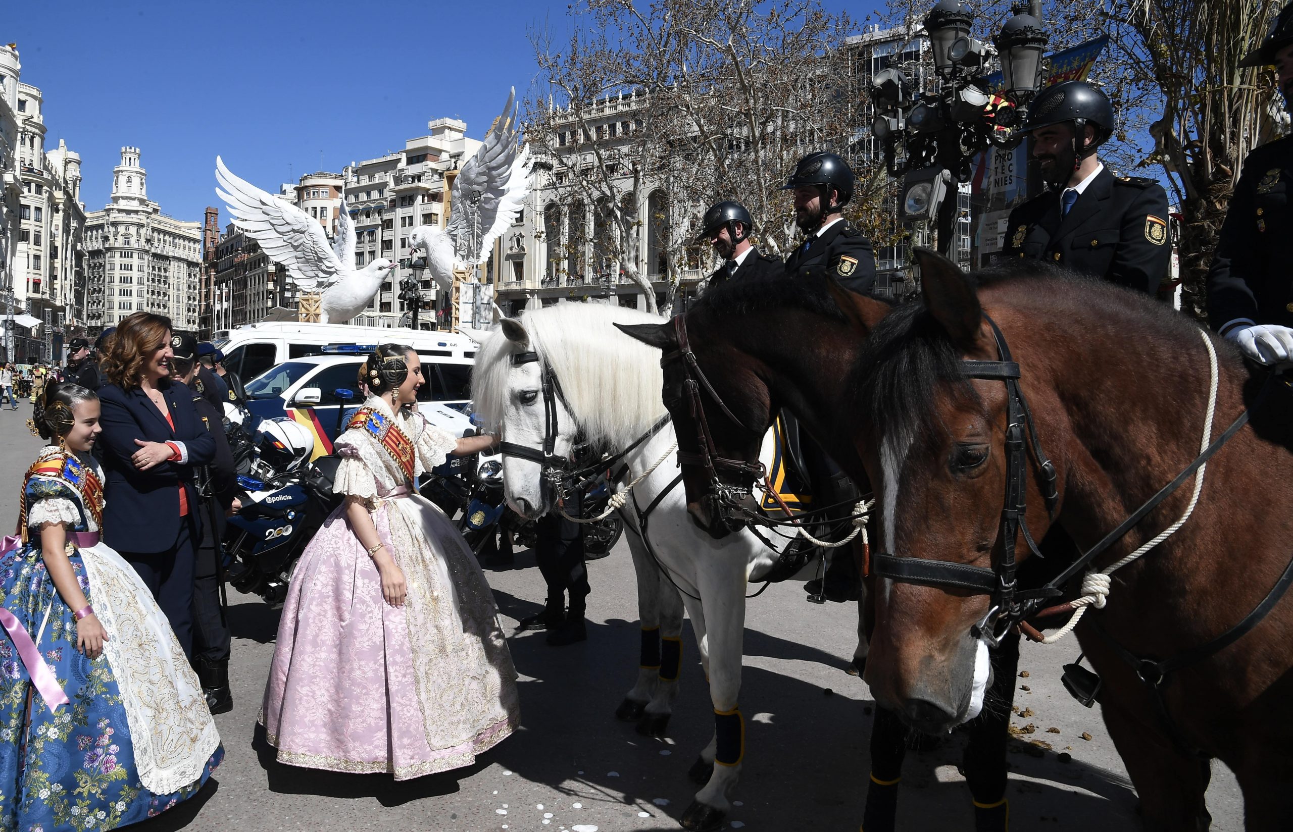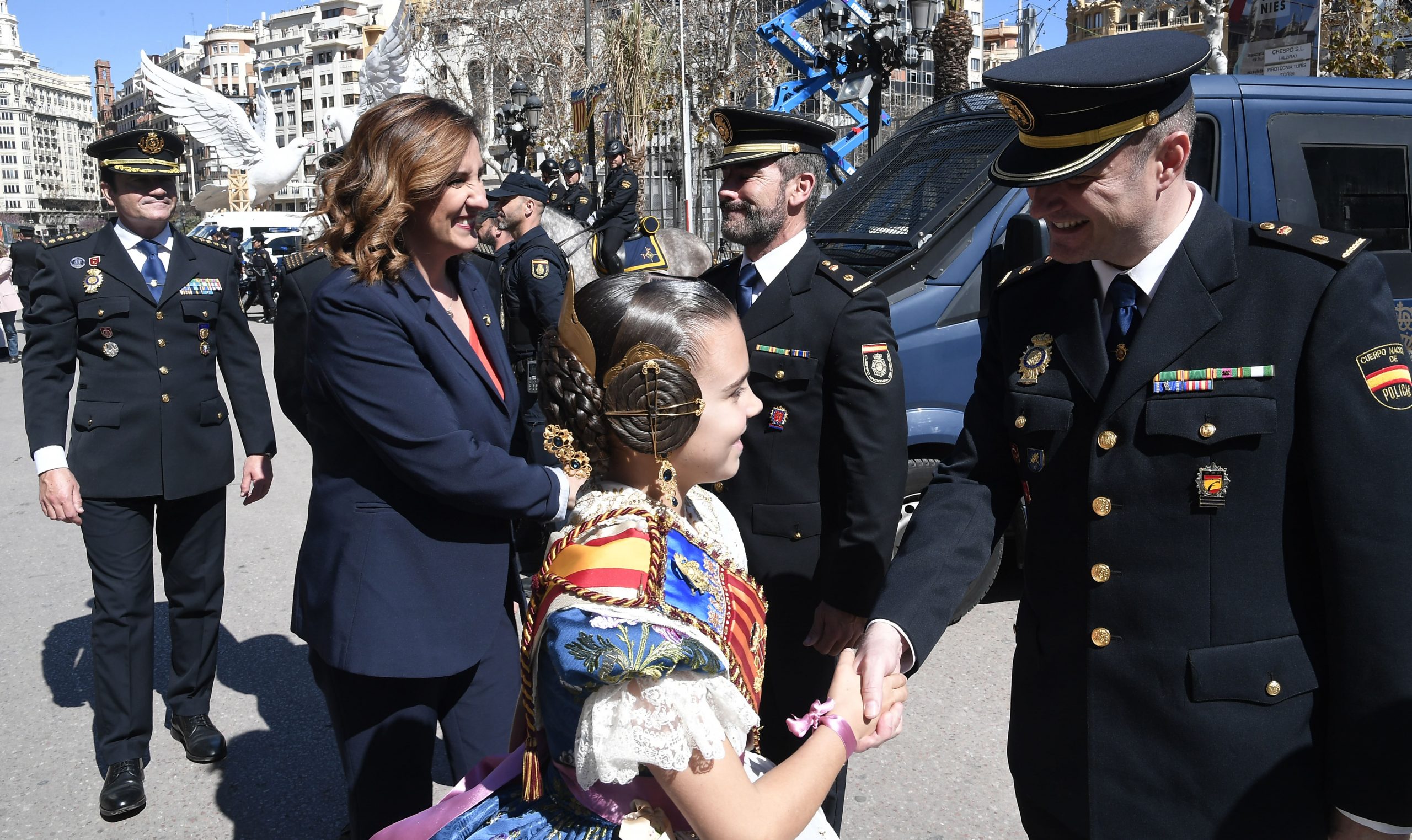 La Policía Nacional despliega un dispositivo especial para velar por la seguridad de las Fallas 2024 con el objetivo de que las celebraciones transcurran con normalidad. Durante la mañana de hoy se ha realizado en la Plaza del Ayuntamiento de Valencia, una exhibición de unidades policiales a las Falleras Mayores, a la que han asistido el Director Adjunto Operativo de la Policía Nacional, José Ángel González Jiménez, el Jefe Superior de Policía en la Comunitat Valenciana, Jorge Manuel Marti Rodríguez, la Delegada del Gobierno, Pilar Bernabé García, y la Alcaldesa de Valencia, MªJosé Catalá, entre otras autoridades.