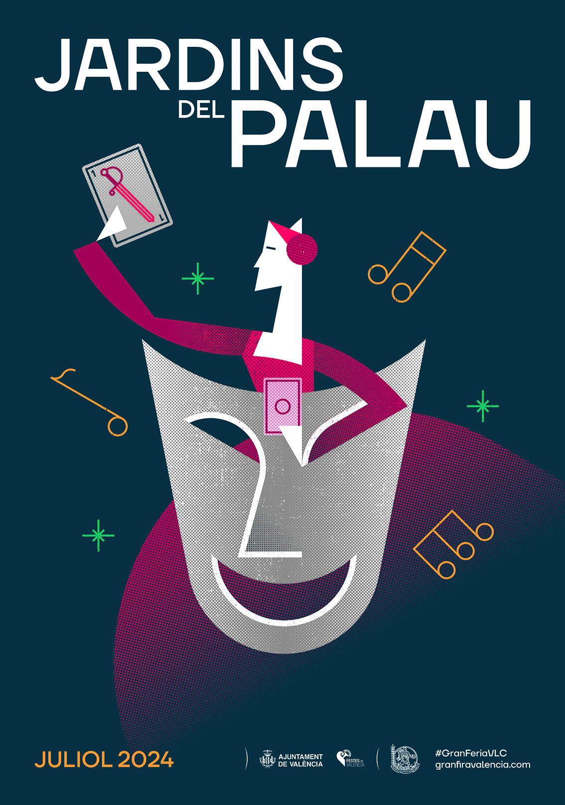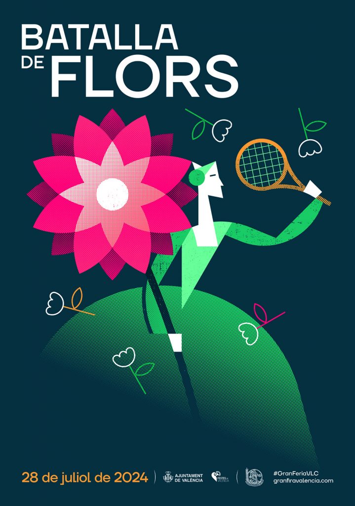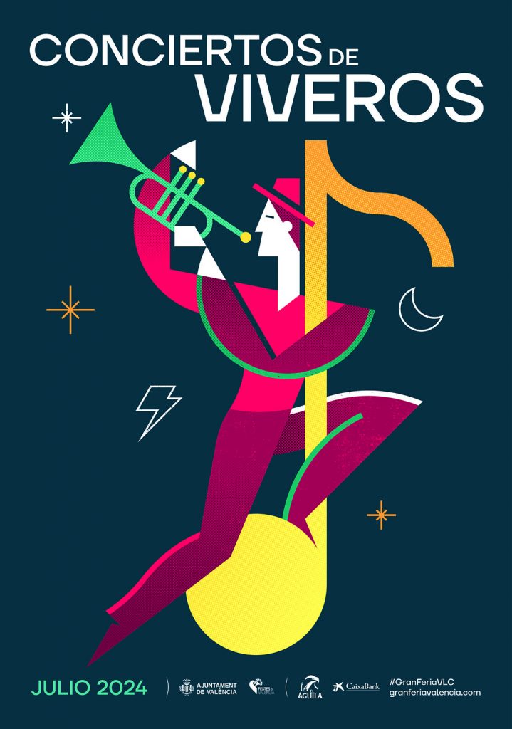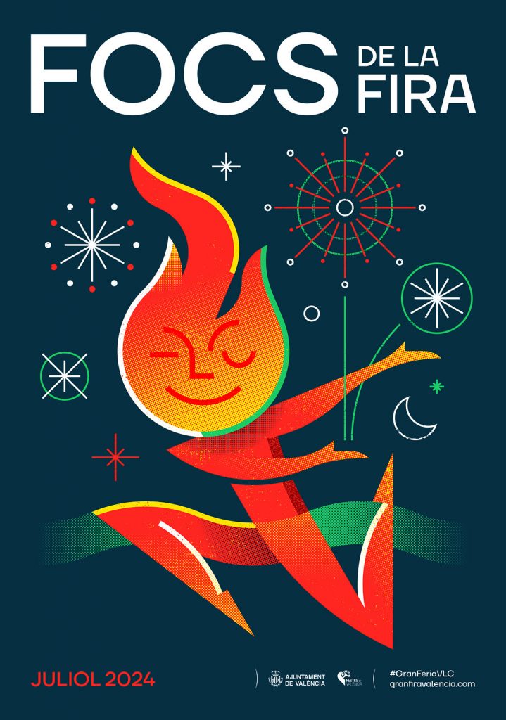 El cartel principal recoge una síntesis de los momentos y emociones que trasmiten la llegada de la fiesta: un clavel de la Batalla de Flors; una trompeta, que representa la música y a los tradicionales Conciertos de Viveros; así como los fuegos artificiales, que salen a la calle empujados por el bufido de la persona que toca la trompeta, lo que transmite que “la participación de los valencianos es el motor de la Gran Feria de València”, ha subrayado Ramón.