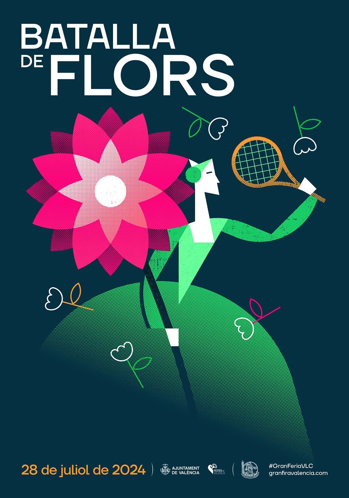 Por lo que respecta a los carteles temáticos, en cada uno de ellos se observa un motivo en grande, que evidencia de qué tratan las actividades principales que se anuncian (fuegos artificiales, música en directo en Viveros, actividades en los Jardines del Palau, la Gran Nit de la feria del sábado 20 de julio y la Batalla de Flors). En estos diseños, también están muy presentes las personas participantes, “en definitiva, se trata de un conjunto de carteles alegres, festivos y que nos trasmiten energía positiva y ganas de participar en las diferentes actividades”, concluye el autor.