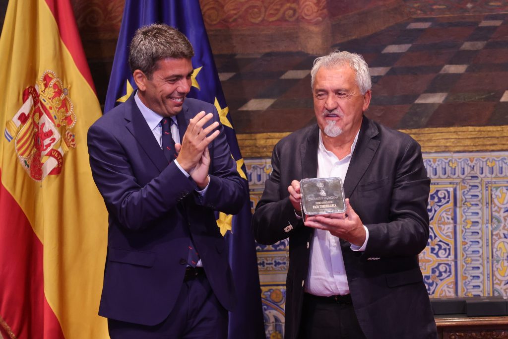 Respecto a los premios entregados ayer en Alicante, el Premio de las Letras de la Generalitat fue para el novelista Ferran Torrent i Llorca, y la Distinción al Mérito Cultural ha recaído en el director del Museo Nacional del Prado, Miguel Falomir Faus; productora de cine María Zamora Morcillo; la Asociación Raíces del Reino de Valencia y, a título póstumo, en Gustavo Pascual Falcó, autor del pasodoble ‘Paquito el Chocolatero’.