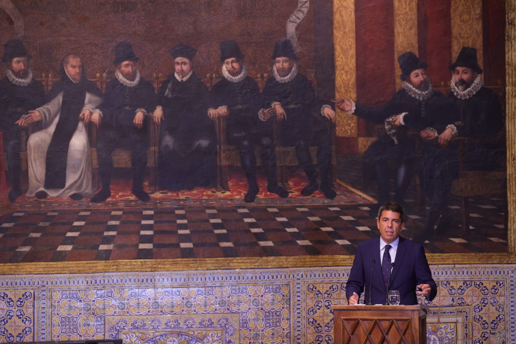 El president de la Generalitat, Carlos Mazón, ha destacado que “la valencianía es un puente y no un muro, en la que se exhiben nuestras señas de identidad como ejemplos de amor por lo propio y no como odio a lo ajeno. Cuanto mejor entendamos que hay espacio suficiente para ser y sentirse valenciano en libertad, más estaremos fortaleciendo ese vínculo histórico que nos une”.