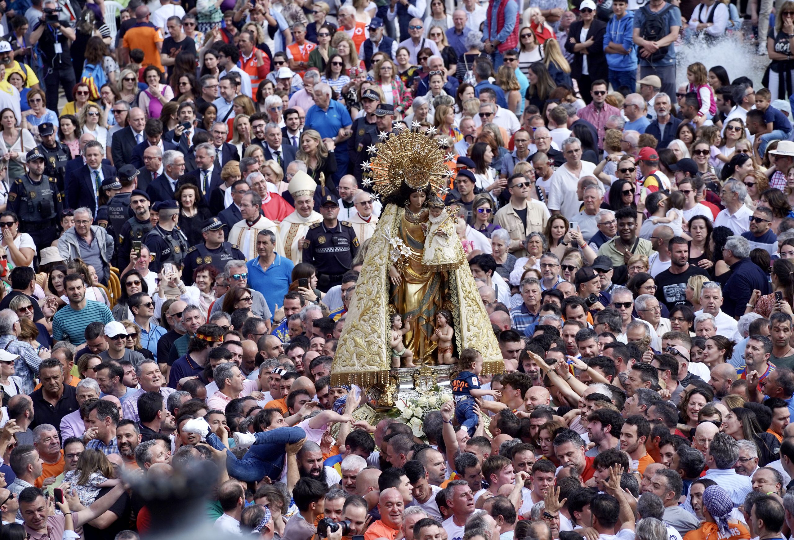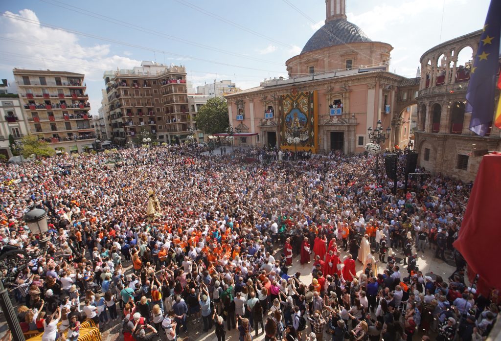 La Plaza de la Virgen de Valencia ha acogido hoy, 12 de mayo, el tradicional traslado de la imagen de la Mare de Déu desde su Basílica a la Catedral con la participación de cientos de devotos.