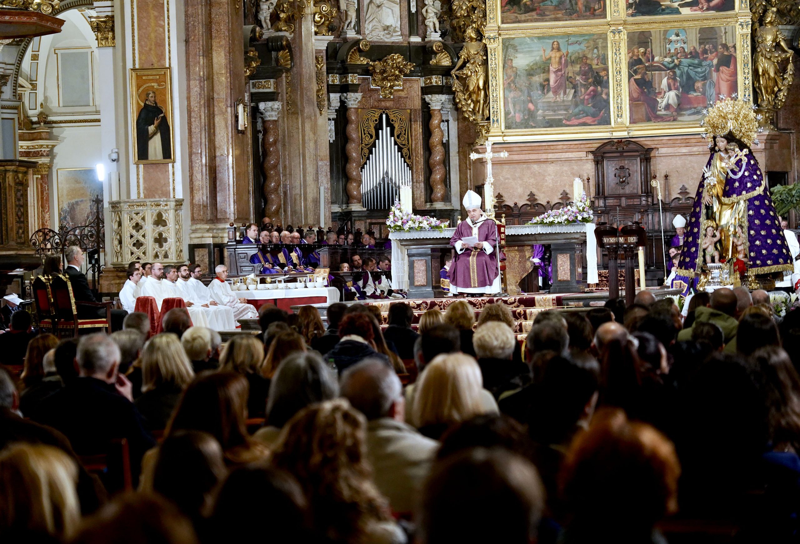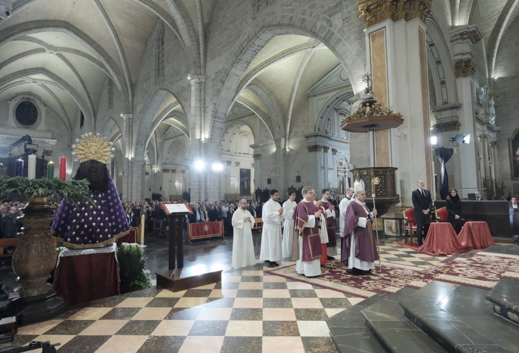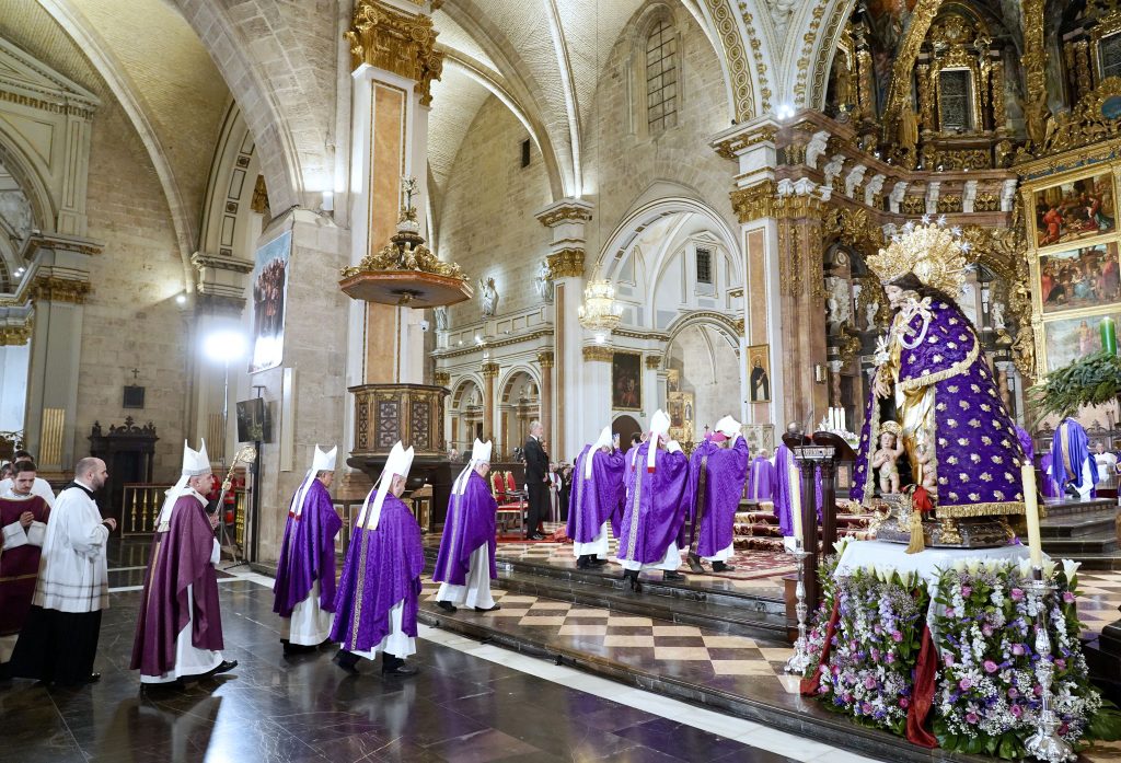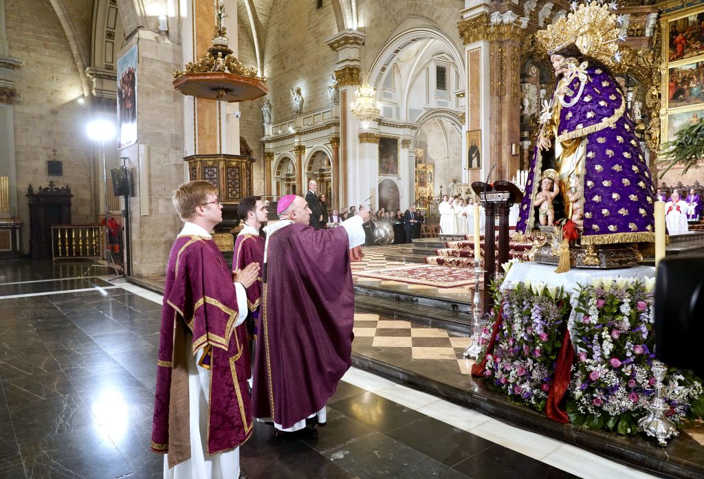 Finalmente, el Arzobispo ha finalizado su homilía haciendo referencia a la Virgen de los Desamparados, cuya imagen peregrina ha acompañado la ceremonia desde el presbiterio y días atrás ha visitado algunas de las localidades más afectadas por la DANA: