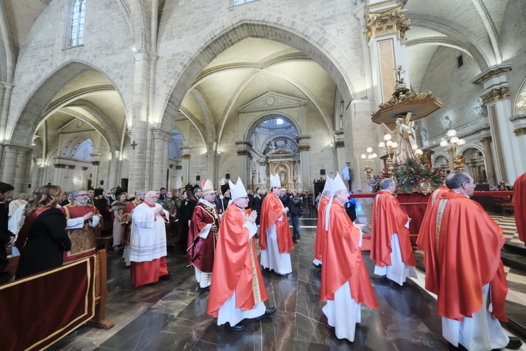 La eucaristía ha sido concelebrada por los Obispos auxiliares de Valencia, Mons. Fernando Ramón y Arturo García, y los Obispos eméritos Mons. Javier Salinas y Salvador Giménez, junto al Cabildo, miembros del Consejo Episcopal y  sacerdotes de parroquias vinculadas a San Vicente Mártir.