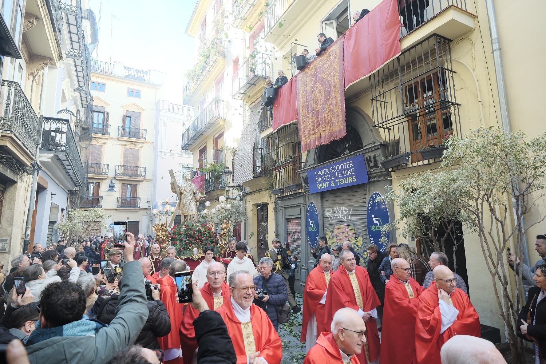 Tras la eucaristía, ha tenido lugar la solemne procesión con la imagen de madera plateada de San Vicente Mártir, obra del escultor valenciano del siglo XVIII José Esteve Bonet, que ha recorrido el entorno de la Catedral por los lugares vinculados al santo.