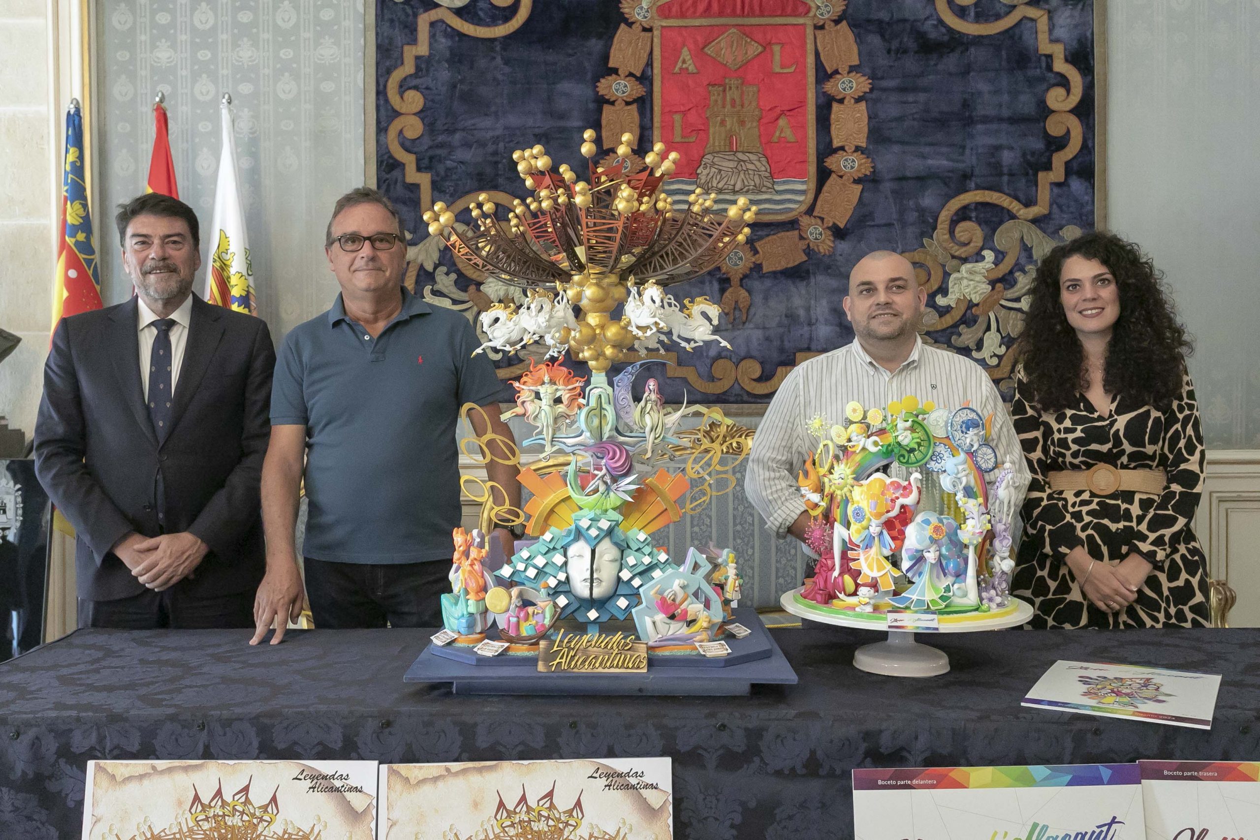 El alcalde de Alicante, Luis Barcala, ha anunciado este viernes que los proyectos ‘Leyendas alicantinas’ y ‘Llum d´Alacant’, originales respectivamente de Pedro Espadero y Sergio Gómez, se convertirán en las Hogueras Oficiales adulta e infantil 2024. Estos dos artistas fueron los únicos que presentaron propuestas al término del plazo fijado en las bases de concurso. El primer edil, que ha estado acompañado por la concejal de Fiestas, Cristina Cutanda, e integrantes de la Corporación Municipal, ha destacado la “unanimidad” en los integrantes del jurado ante dos propuestas que ha calificado como “excelentes”.