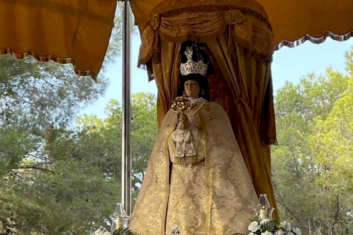 Con la emoción a flor de piel, los asistentes entonaron las dos salves en honor a la Virgen antes de que comenzara su partida. Un momento solemne que marcó el inicio de la romería, que llevará a la Virgen de regreso a su santuario en Hondón de las Nieves, donde permanecerá hasta 2026.