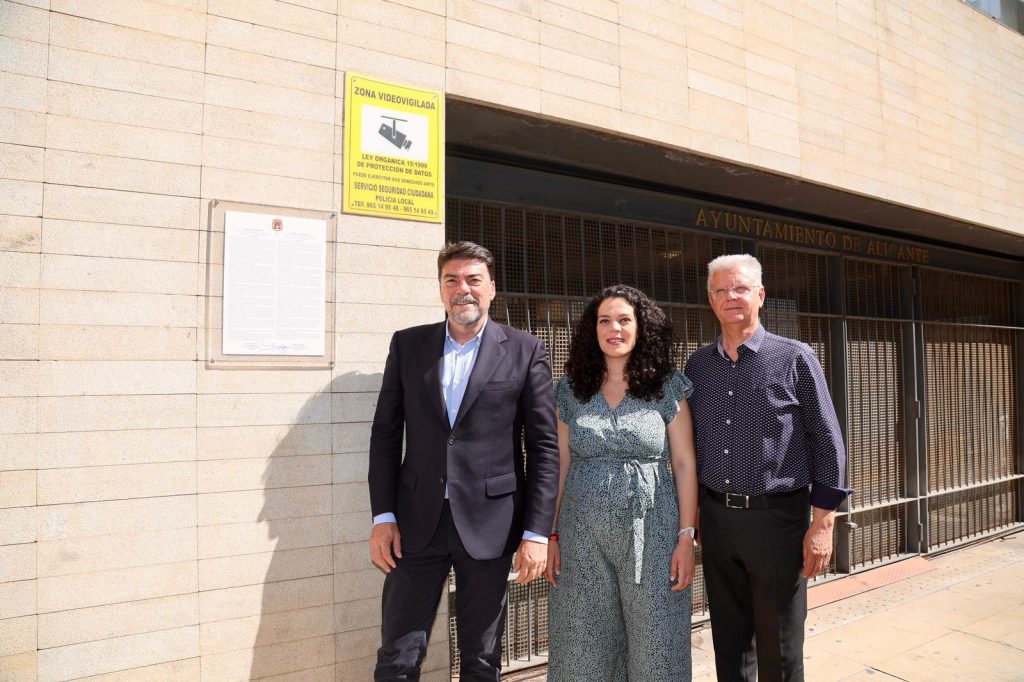 Barcala, que estado acompañado por los concejales de Fiestas y Seguridad Ciudadana, Cristina Cutanda y Julio Calero, respectivamente, ha citado el Bando de Hogueras, el primero en la historia, de 1928 en el que el alcalde Julio Suárez-Llanos hizo un llamamiento «a engalanar balcones y ventanas de los edificios urbanos con cobertores y banderolas».
