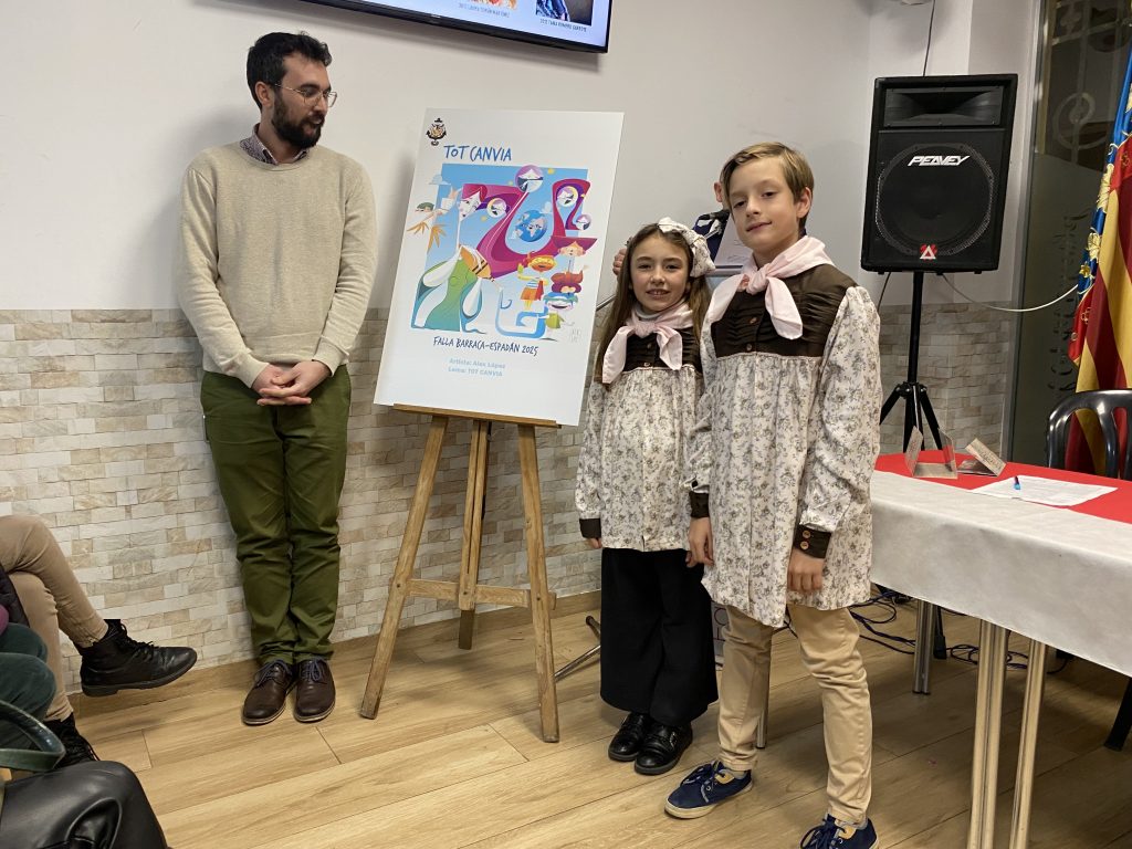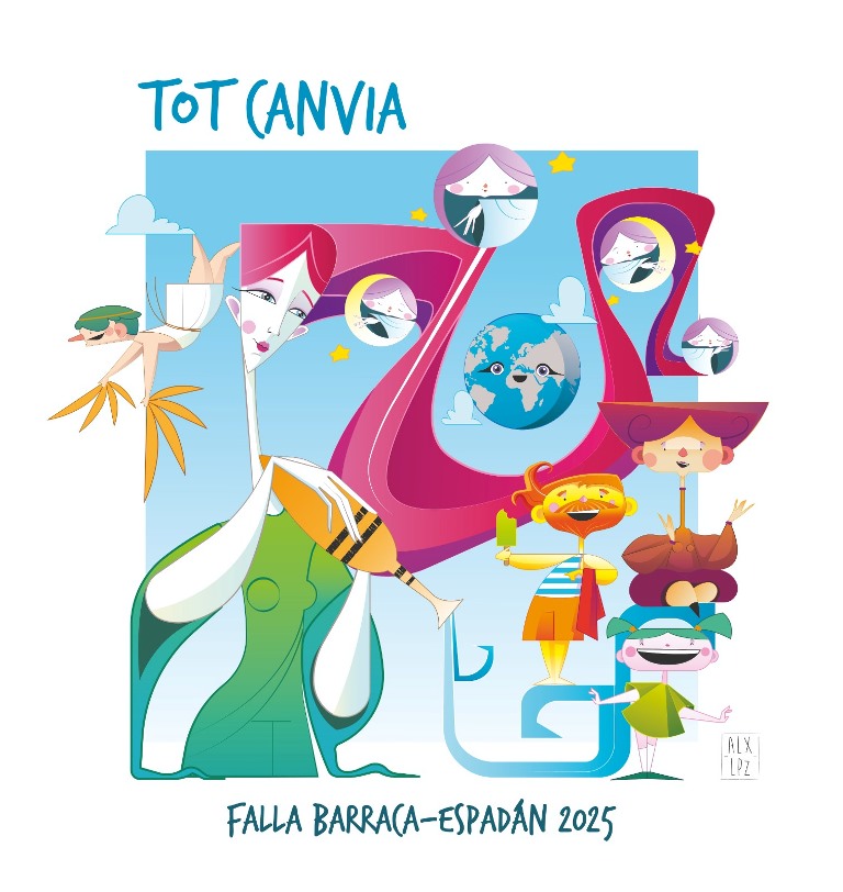 El artista Álex López, encargado de la falla infantil por segundo año consecutivo, presentó el proyecto que llevará por lema «Tot canvia» que militará en la sección 3ª. La obra será un homenaje a los cambios que forman parte de la vida y la naturaleza, representados a través de una majestuosa figura central: una mujer que simboliza la vida misma, con un cántaro que derrama el río de la existencia. Este río, lleno de detalles y escenas, reflejará las distintas etapas de la vida, ofreciendo un mensaje poético y evocador para los más pequeños.