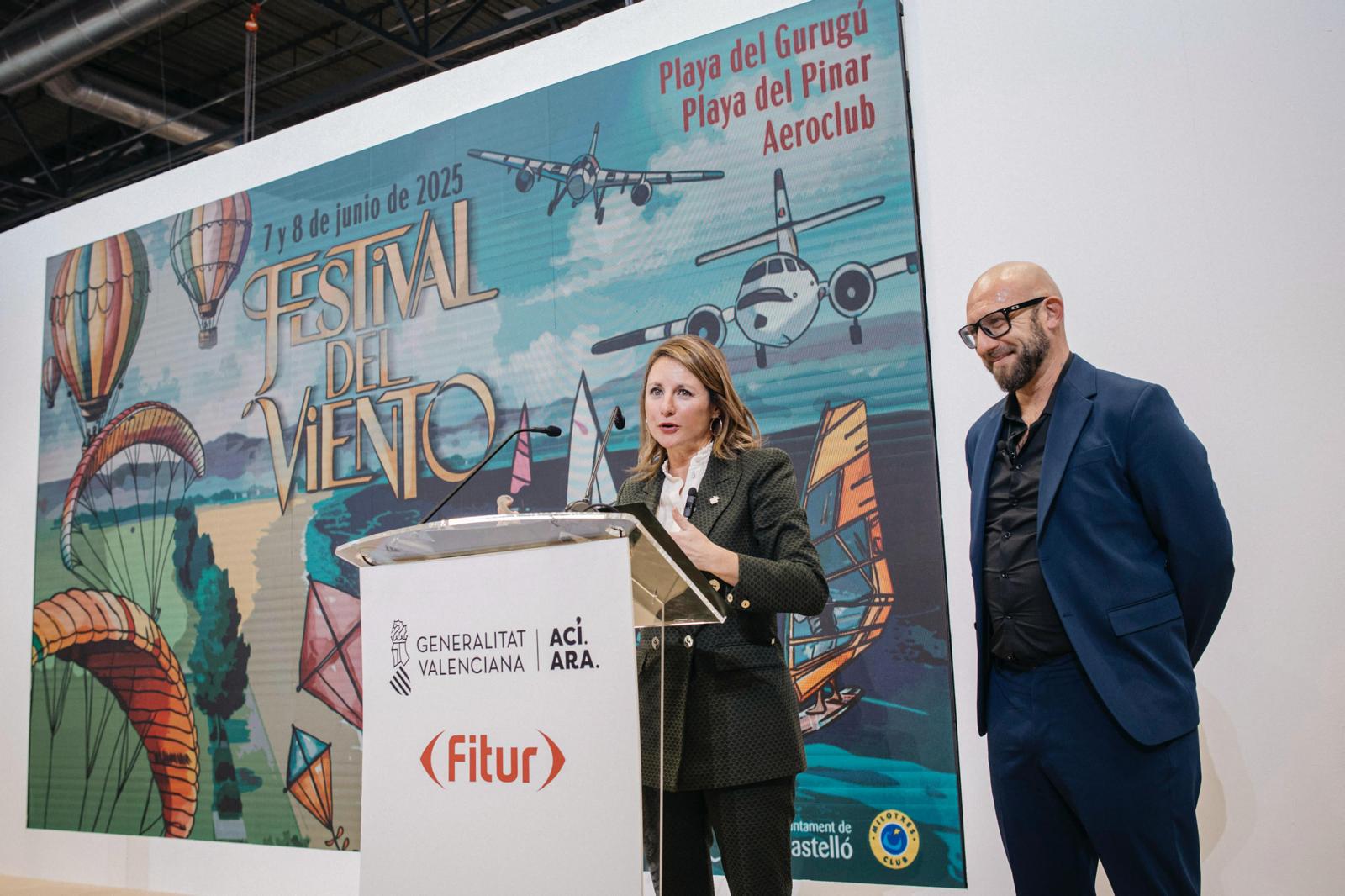 La alcaldesa de Castellón, Begoña Carrasco, ha presentado esta tarde en la Feria Internacional de Turismo (Fitur) el Festival del Viento 2025 que tendrá lugar los días 7 y 8 de junio en las playas del Pinar y el Gurugú. Un acto en el que ha estado también presente la consellera de Innovación, Industria, Comercio y Turismo, Marián Cano; la presidenta de Les Corts, Llanos Massó, la concejala de Turismo, Arantxa Miralles; la concejala de Cultura, María España; la teniente de alcalde del Grau, Ester Giner, director general de Turismo, Israel Martínez, así como el alcalde de Elche, Pablo Ruz o el diputado provincial de Turismo, Andrés Martínez, entre otros.