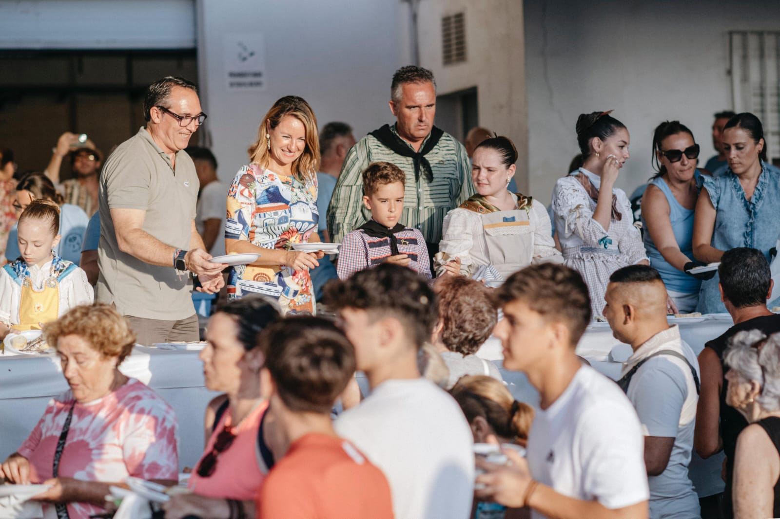 En este popular acto, la alcaldesa y los ediles han repartido, junto a las reinas de Sant Pere, alrededor de 700 kilos de pescado con pan y unos 250 litros de vino a las personas que se han acercado hasta la explanada junto a la lonja para participar en esta degustación que es uno de los actos más especiales del programa de las fiestas graueras.