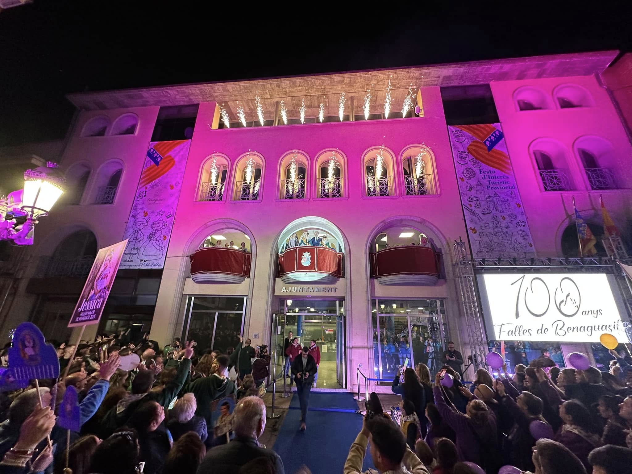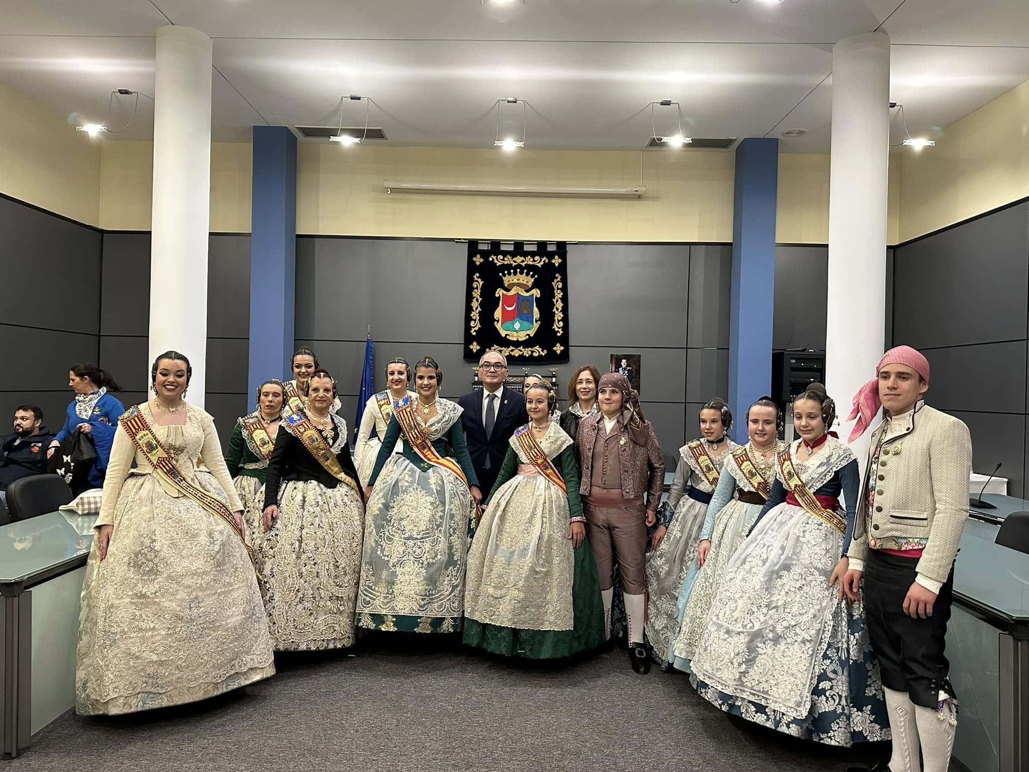 • Las Falleras Mayores de Benaguasil, Jessica Condes y Celeste Sena, acompañadas de sus respectivas Cortes de Honor, junto con el presidente infantil Aitor Tarin, la presidenta de la JLF Pepa Cano, y el Alcalde, Ximo Segarra, dieron la bienvenida a las Fallas