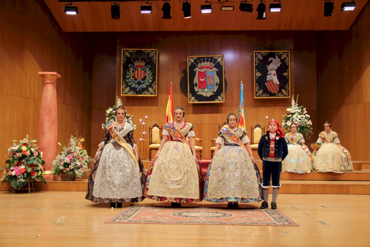 Acto seguido llegó el momento de proclamar a Noemí, que acompañada por la presidenta de la JLF, Pepa Cano y por el alcalde, Ximo Segarra, recibió la banda de fallera mayor de manos de éste.