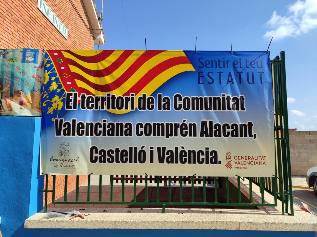 L’Ajuntament de Benaguasil ha procedit a col·locar una sèrie de pancartes en les façanes dels seus edificis municipals en el marc de la campanya “Sentir el teu Estatut”, l’objectiu del qual és fer arribar a la ciutadania l’estatut d’autonomia de la Comunitat Valenciana i el dret civil valencià.
