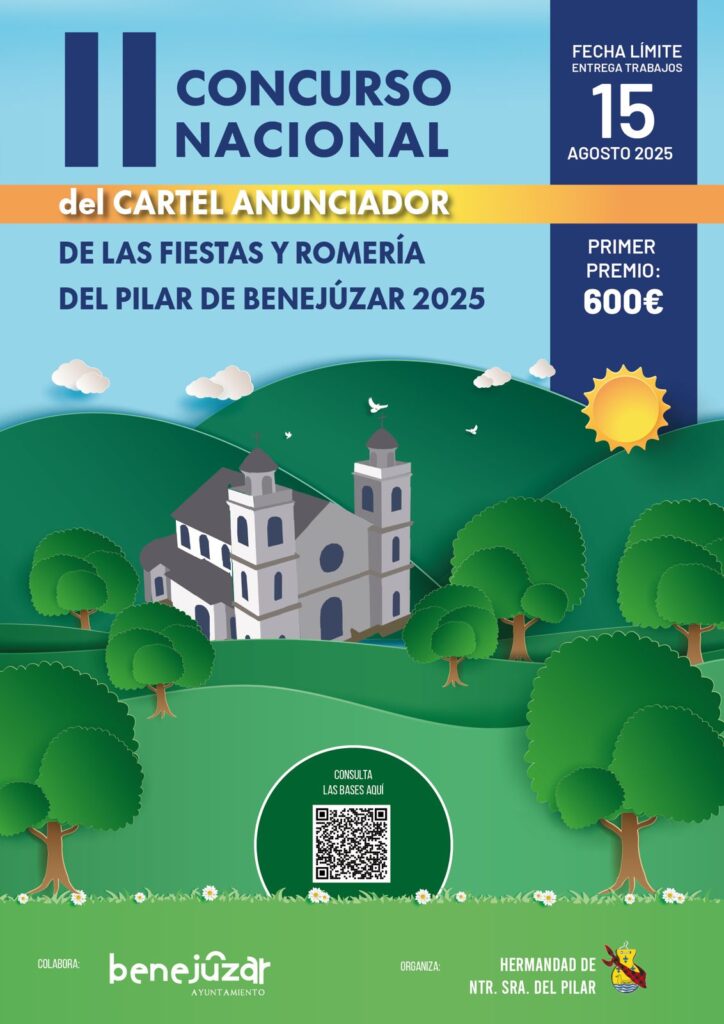 El Ayuntamiento de Benejúzar y la Hermandad de Nuestra Señora del Pilar han convocado el II Concurso Nacional del Cartel Anunciador de las Fiestas y Romería del Pilar 2025. Una iniciativa cultural que, tal y como ha señalado el alcalde de la localidad, Vicente Cases, “busca poner en valor la tradición, la creatividad artística y el arraigo popular en torno a las Fiestas de La Pilarica, una de las celebraciones más emblemáticas de nuestro pueblo que, cada 12 de octubre, llena Benejúzar de visitantes y de devoción, emoción y cariño a la imagen de la Virgen del Pilar”.