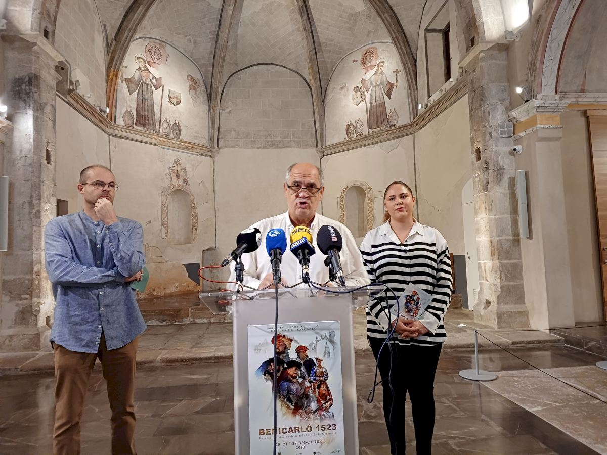 L’alcalde de Benicarló, Juanma Cerdá, acompanyat de la regidora de Cultura, María Teresa Pellicer, i l’historiador Javier Hernández han presentat la programació, que es concentrarà els dies 20, 21 i 22 d’octubre i que té una doble vessant divulgativa i didàctica.