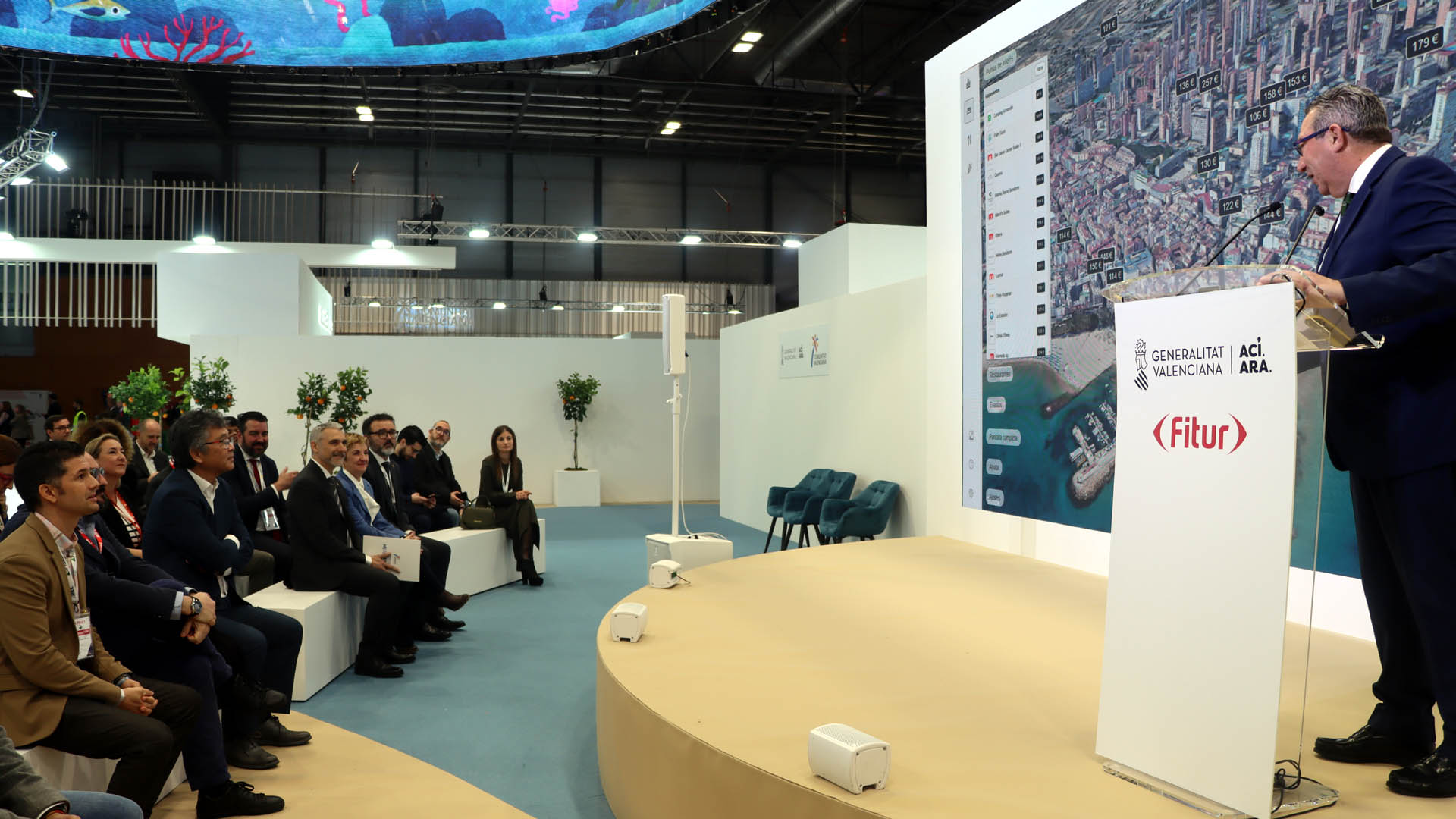 Benidorm se ha convertido hoy en el primer destino turístico del mundo en ofrecer a los turistas una tecnología pionera que aglutina de manera virtual toda la oferta turística y de servicios de la ciudad para mejorar y facilitar la experiencia turística. La herramienta, denominada ‘Mirai Maps: Benidorm’, ha sido presentada por Hosbec y la plataforma Mirai, en la plaza central del stand de la Comunitat Valenciana en el arranque de una nueva edición de la Feria Internacional de Turismo, Fitur. En esta presentación ha participado el alcalde de la ciudad, Toni Pérez, al que también se han unido el presidente de la Generalitat, Carlos Mazón; la consellera de Innovación, Industria, Comercio y Turismo, Marián Cano; y otros representantes del sector.