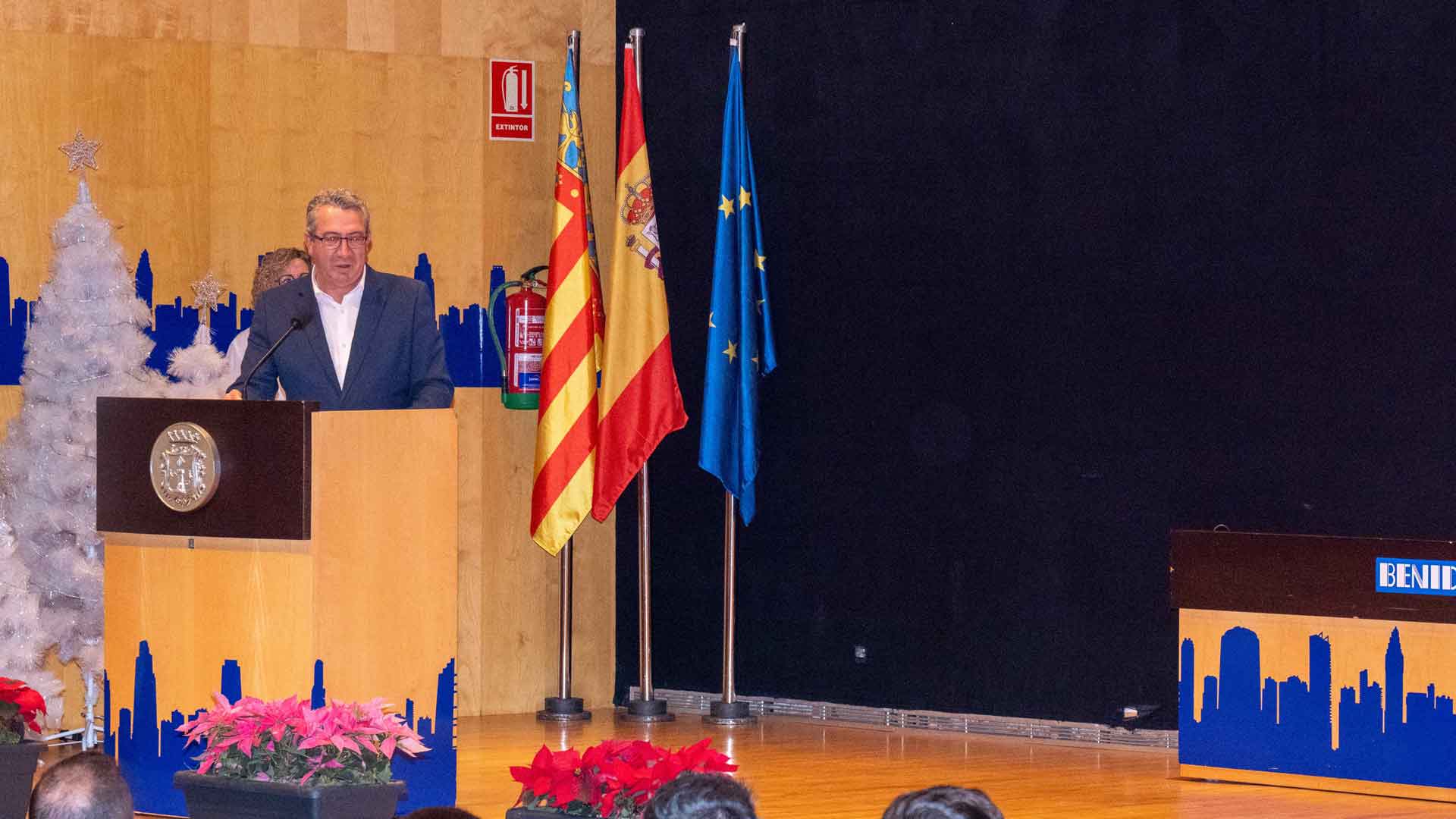 Toni Pérez ha compartido con la concurrencia su “sensación de que hoy estemos en Nochebuena” porque la ciudad está “en ebullición absoluta” en buena parte “por la ilusión del ‘bonoconsumo’” #BenidormTeDaMás con la colaboración de centenares de comercios locales.